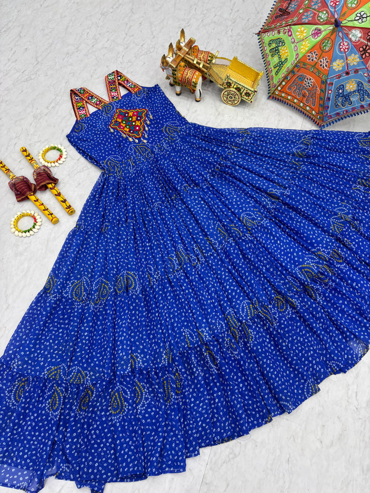 Royal Blue Georgette Gown with Gamathi Work Ideal for Dandiya Celebrations
