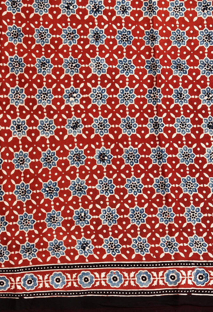 Available in semi gaji silk ajrakh natural Mil print saree with ajrakh and fancy ajrakh pallu saree Same fabric Ajrakh blouse.