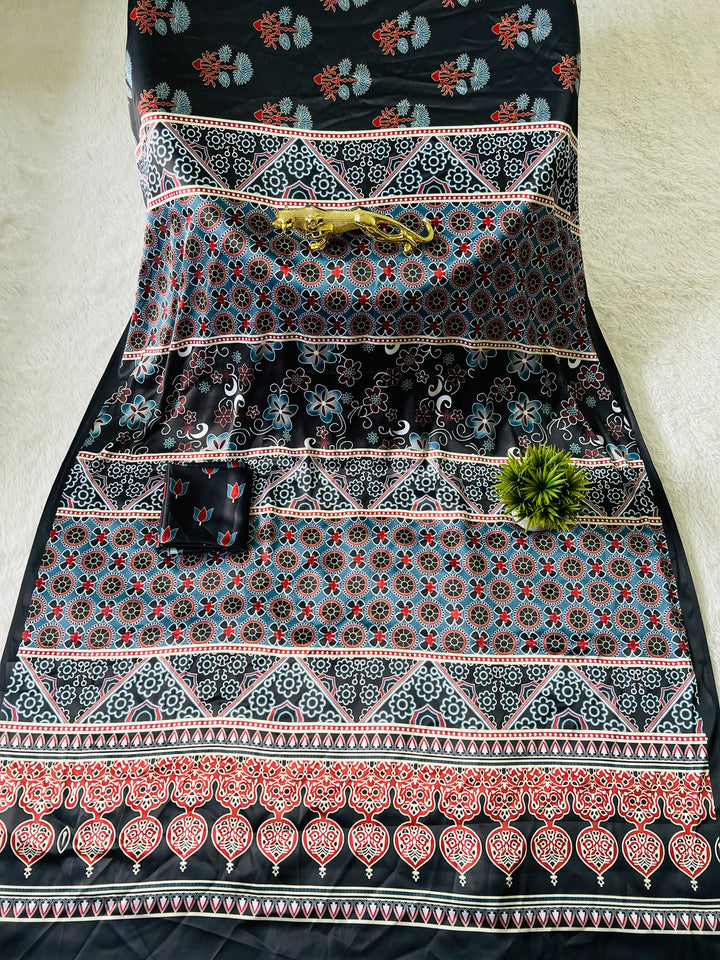 Black Ajrakh Primum Modal Silk Saree With Blouse