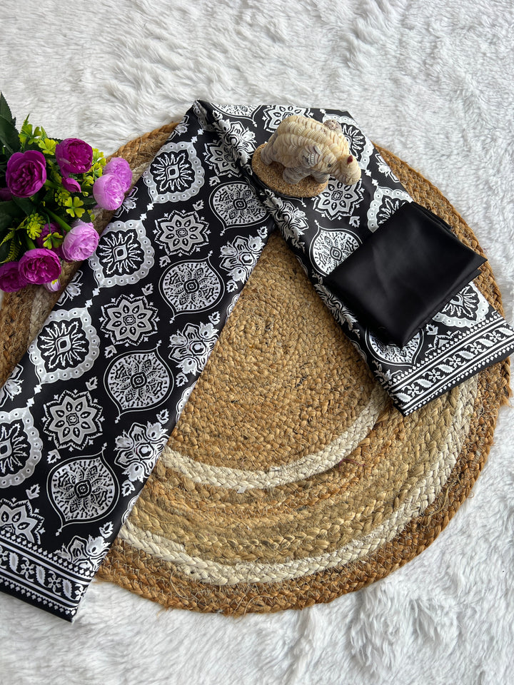 Saree work : Digital Print Border with Ajrakh Rich Pallu With Contrast Blouse