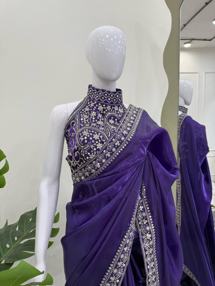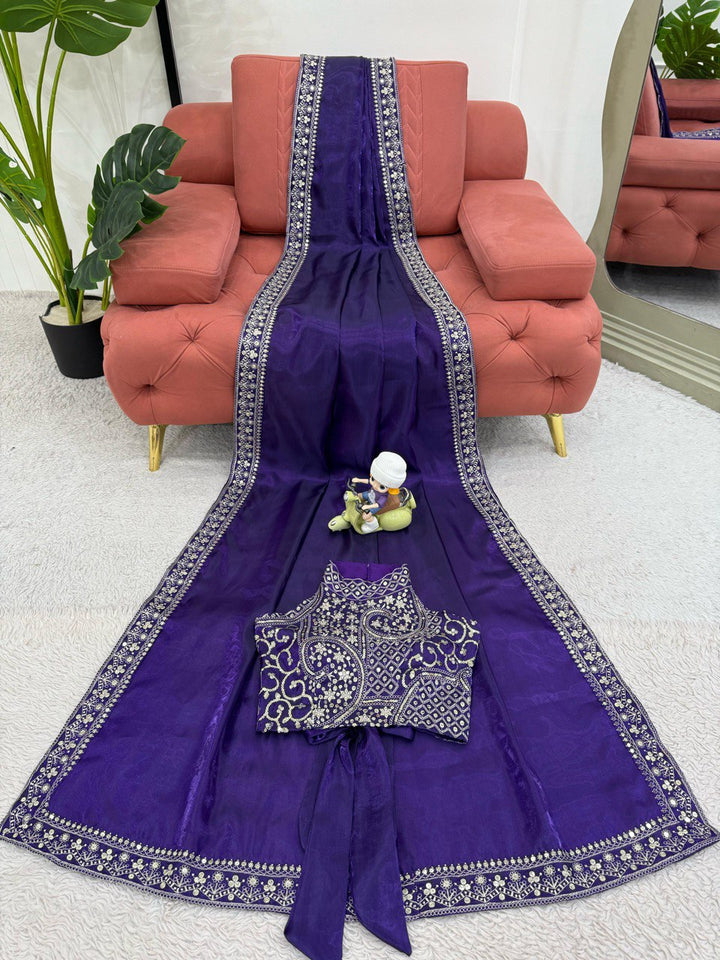 Blue Beautiful Designer Saree on Jimmy Chu Fabric with Thread & Sequence work