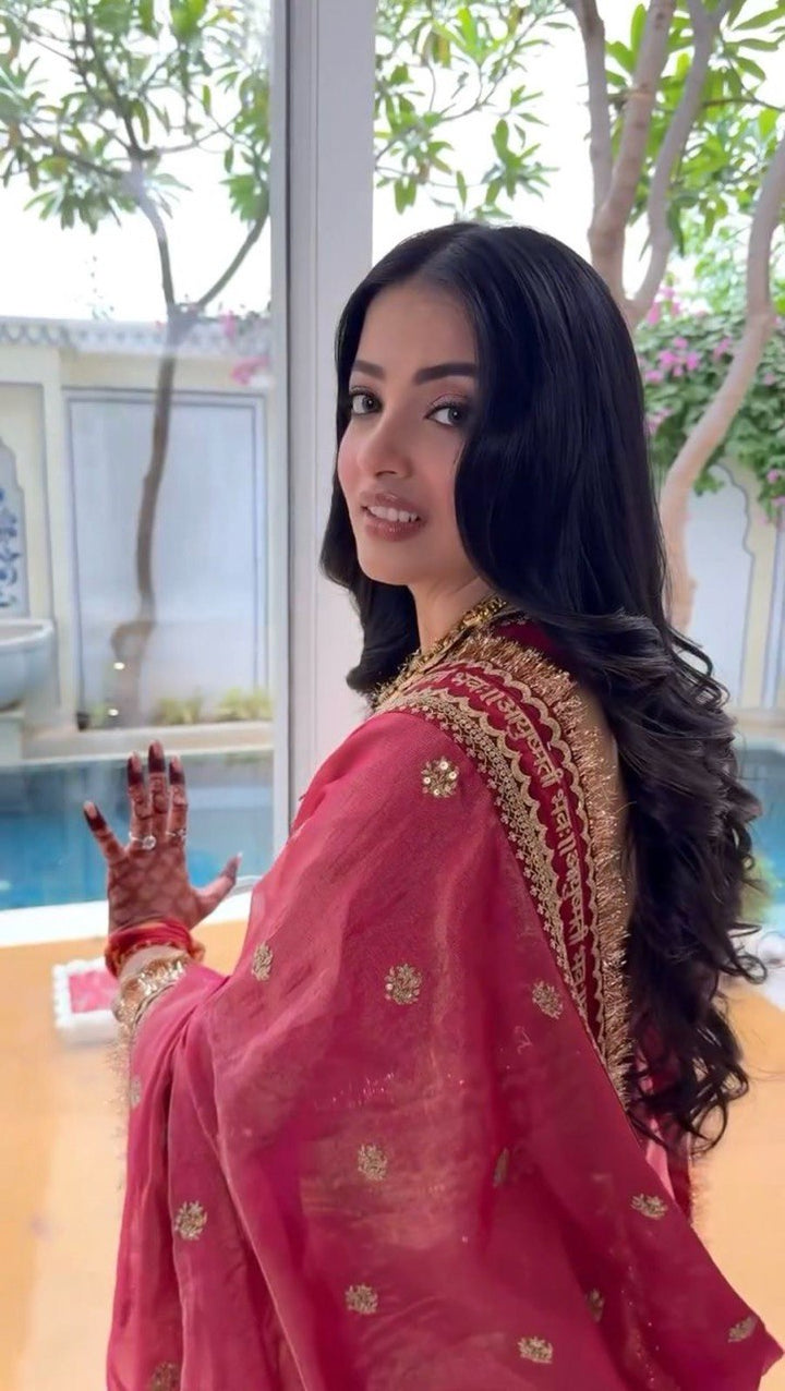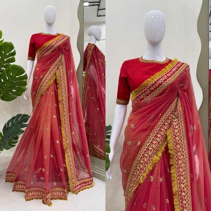 Beautiful Red Designer Saree on Twil Net Fabric with Thread & Sequence Work