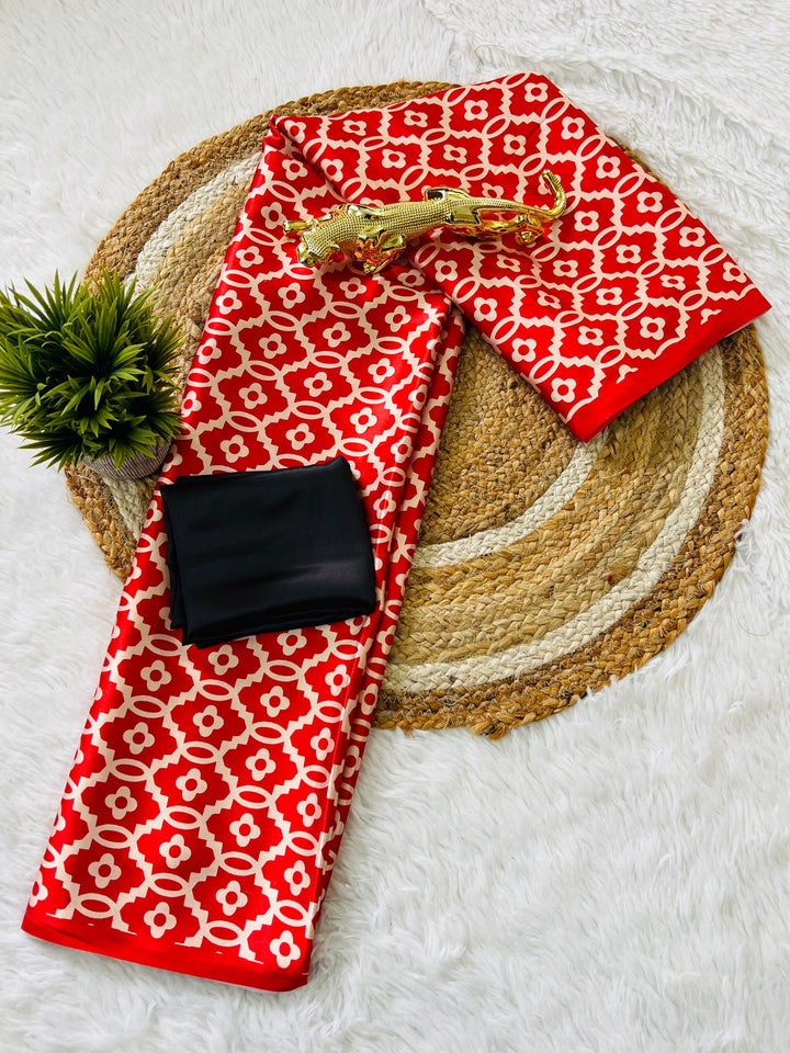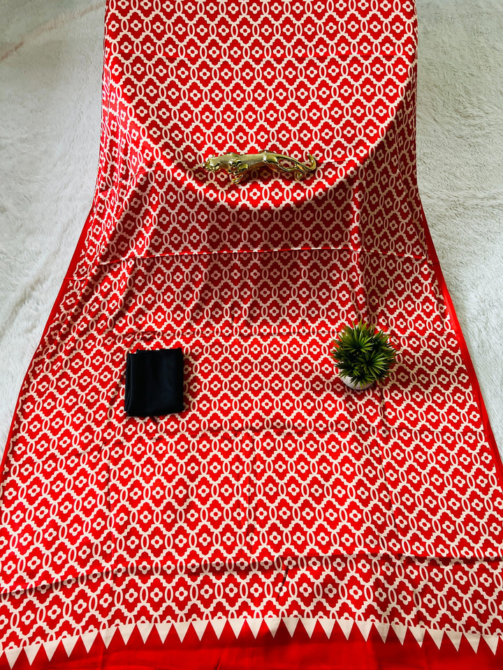 Red Ajrakh Primum Modal Silk Saree With Blouse
