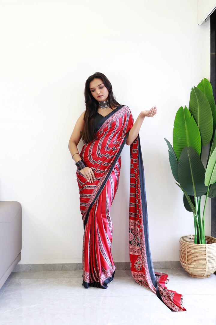 Black And Maroon Ajrakh Printed Soft Modal Silk Natural Print Saree