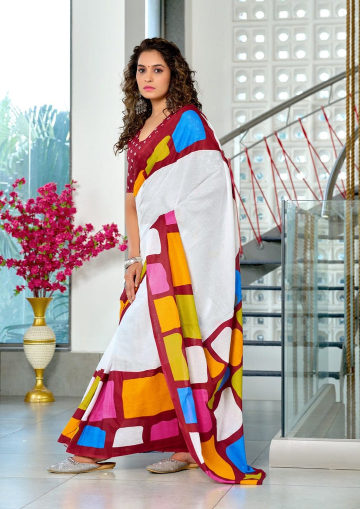 Length: 6.30 MTR PURE COTTON FANCY BAGRU BLOCK PRINT SAREES WITH BLOUSE PICE.