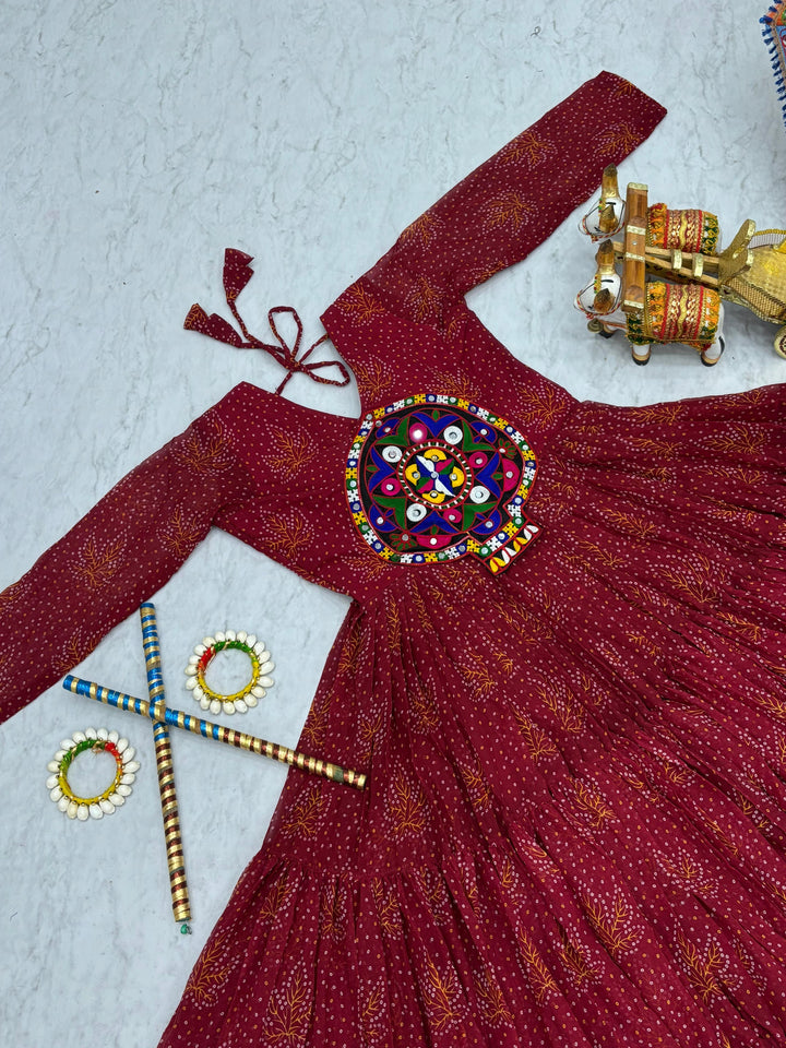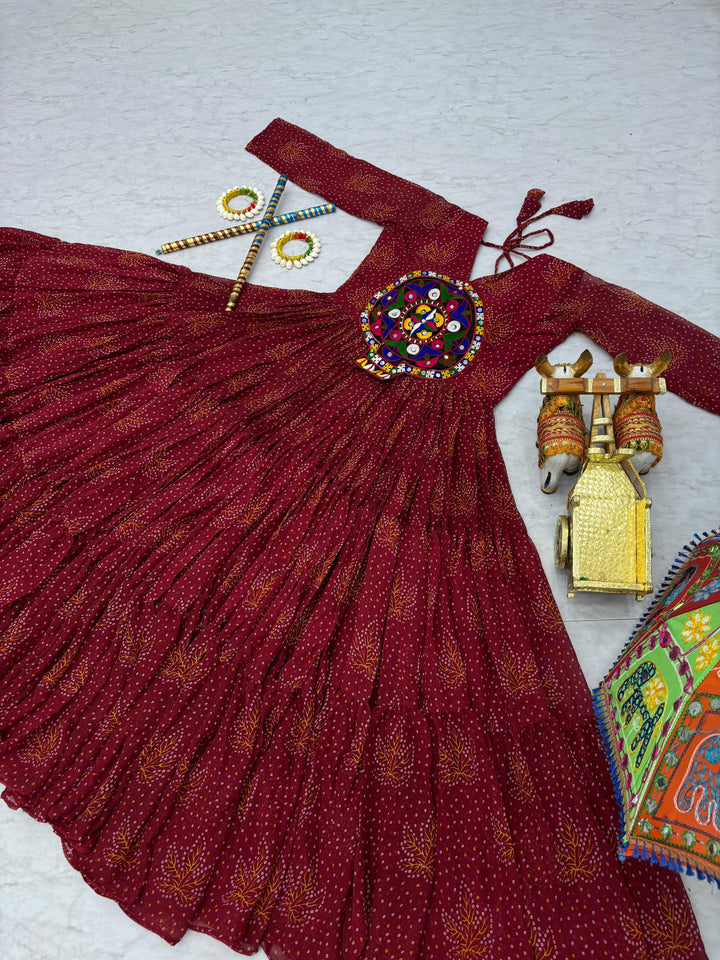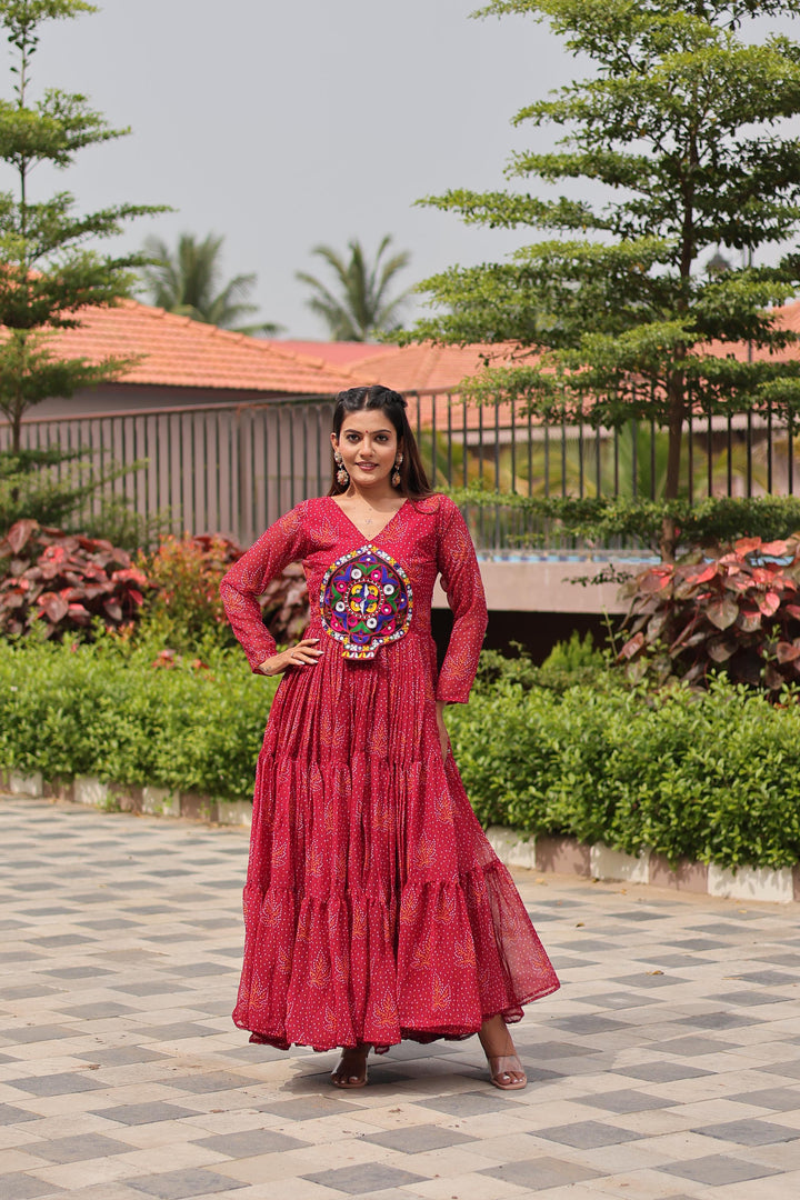 Red Navratri Gown Faux Georgette with Heavy Gamathi Mirror Work Dandiya Nights