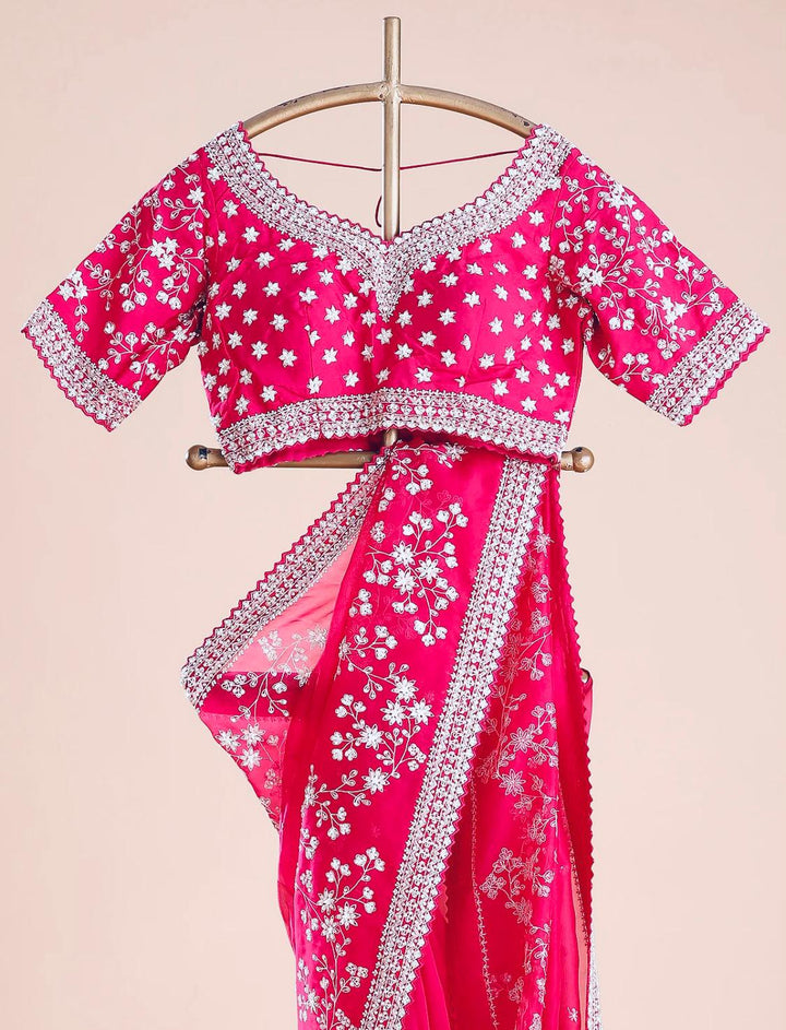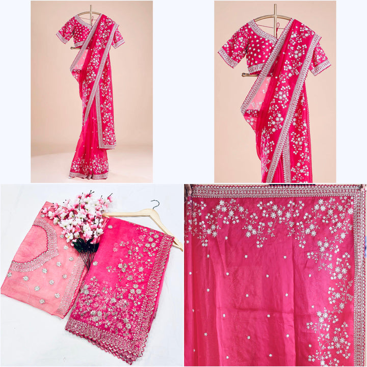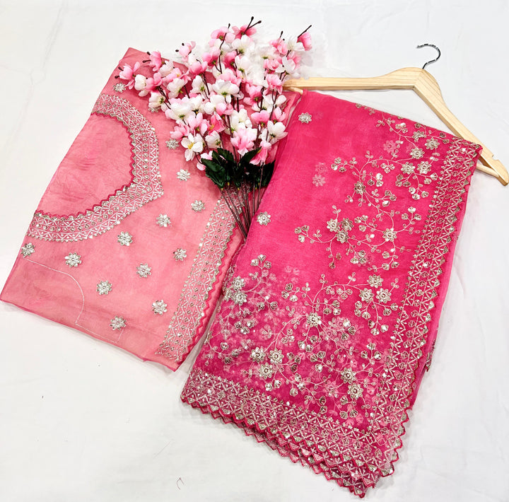 🏷️ Blouse :-Heavy Khadi Organza With Zari+Sequence Embroidery Work