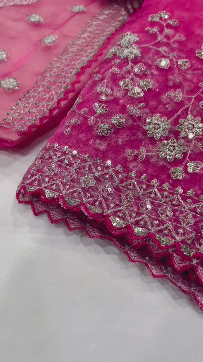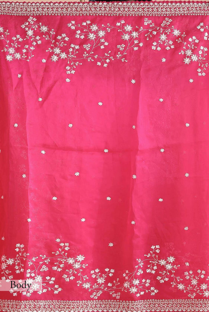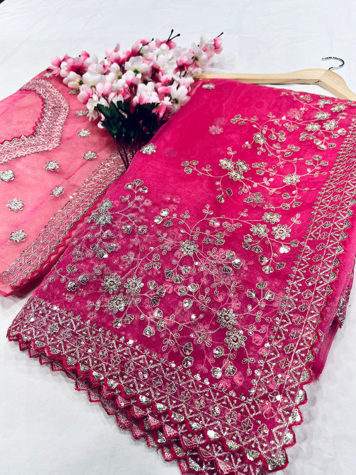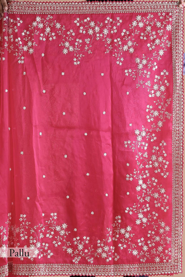 Heavy Khadi Organza With Beautiful C_Pallu Embroidery Zari+Sequence And Cutwork Border
