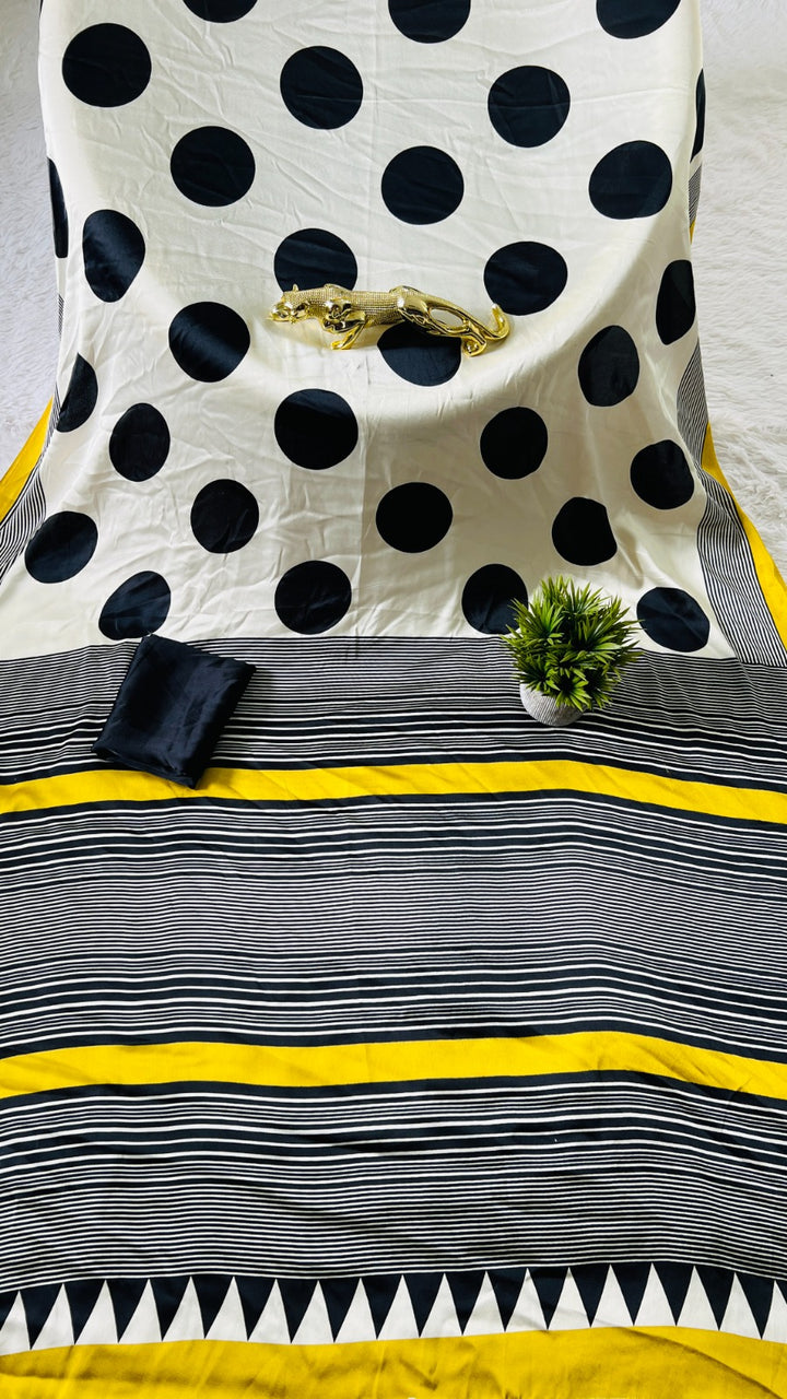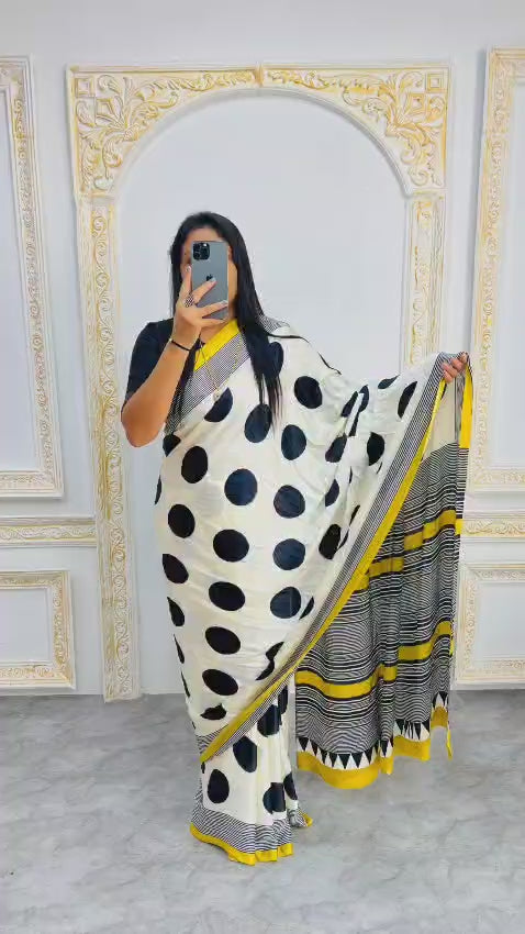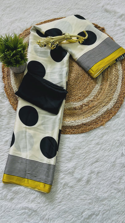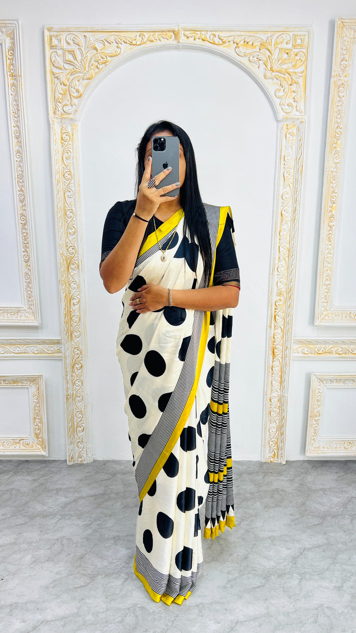 Saree work : Digital Print Border with Ajrakh Rich Pallu With Contrast Blouse