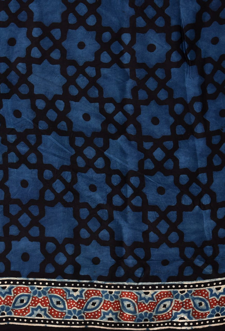 Blue Ajrakh Gajji Silk Ajrakh Fancy Pallu saree