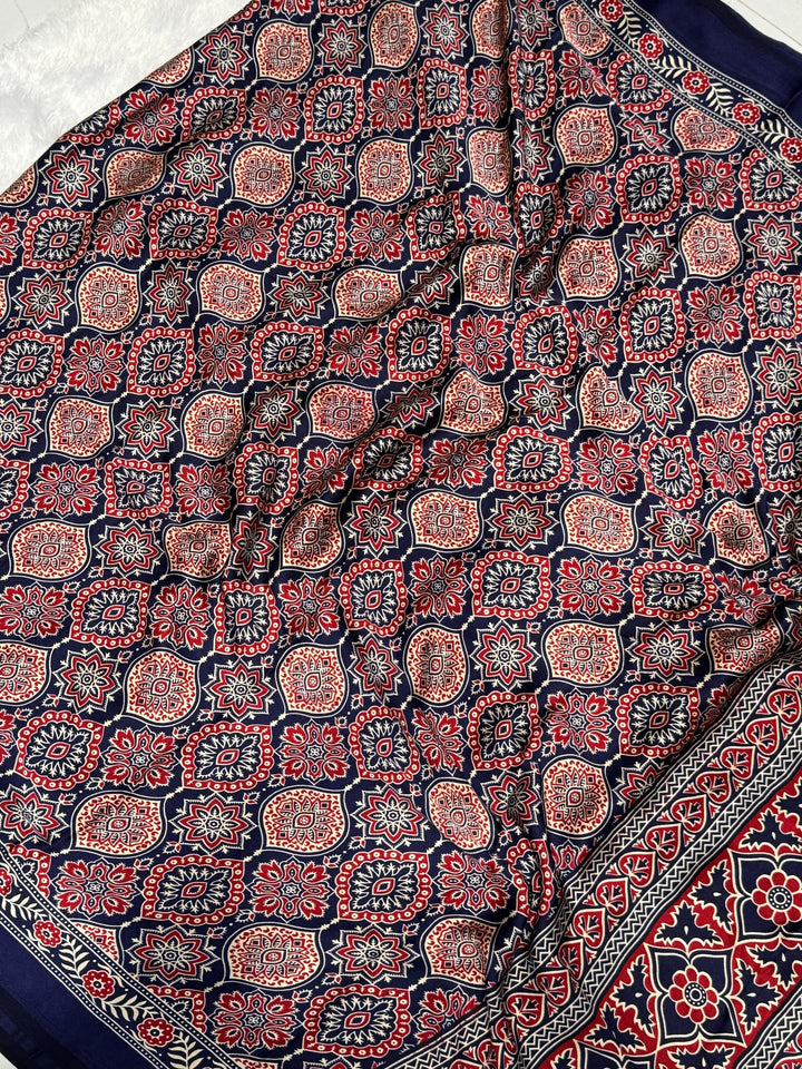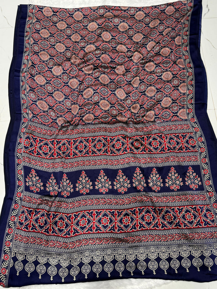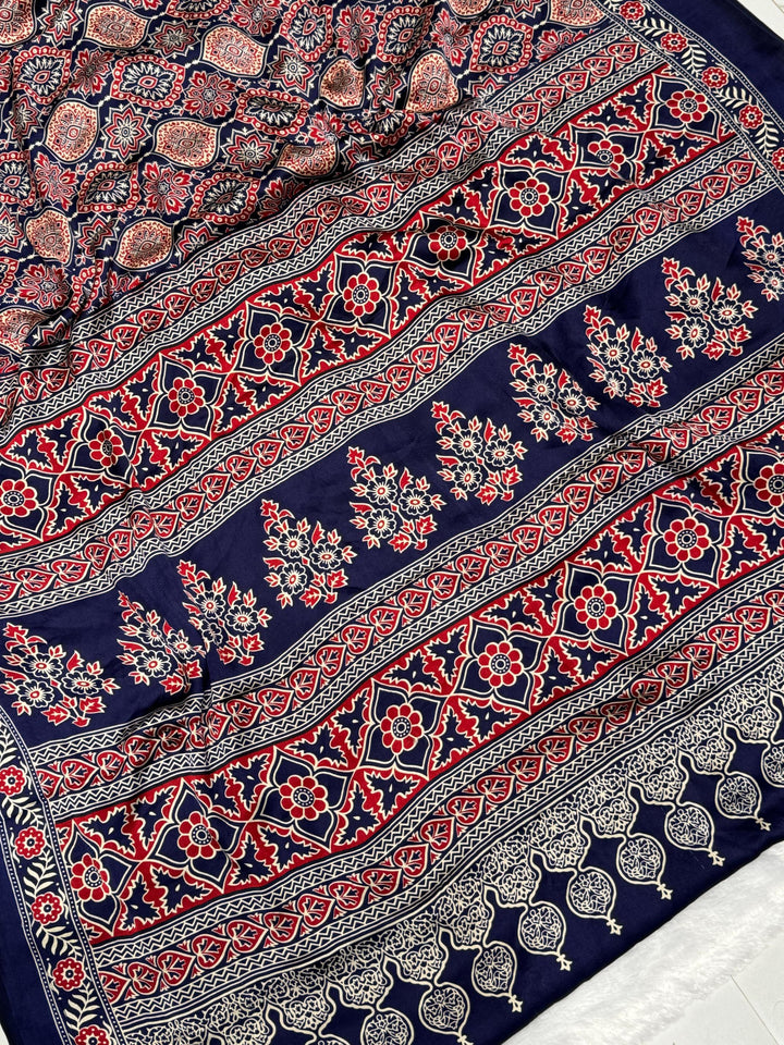 New ajrakh modal Silk Ajrakh Fancy pallu saree