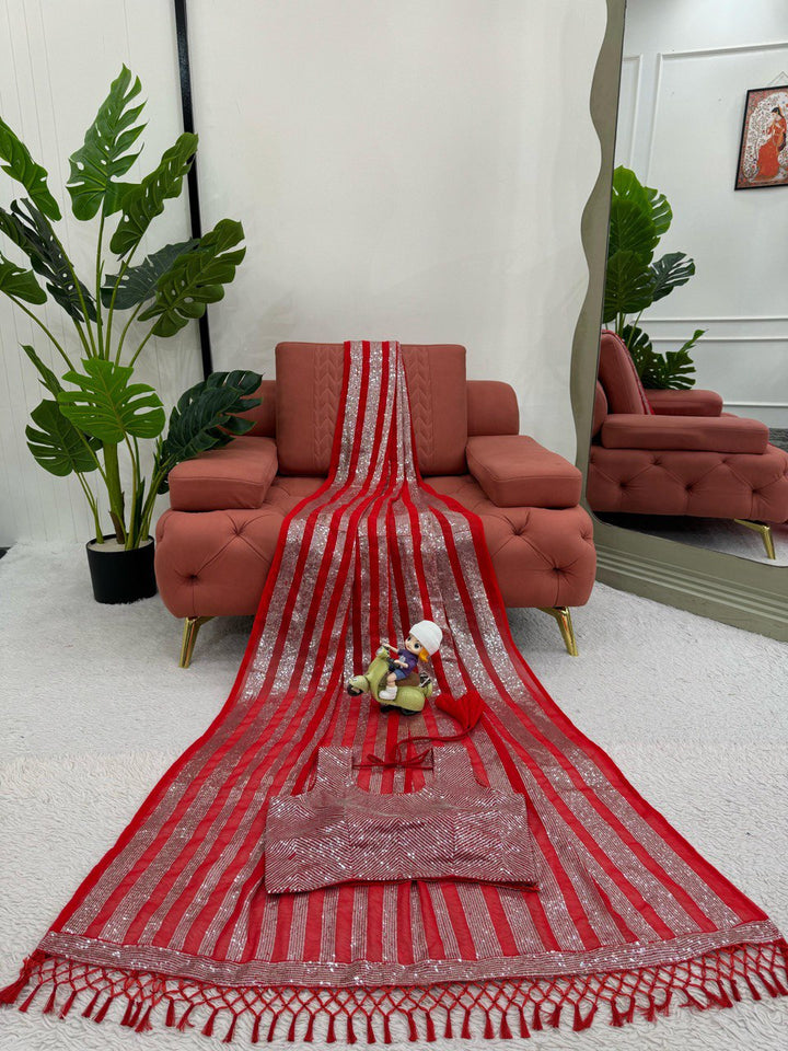 Looking some one for this same colour beautiful Designer Saree on Faux Georgette Fabric with Thread & Sequence work and blouse on Jimmy Chu Fabric with Thread & Sequence work.
