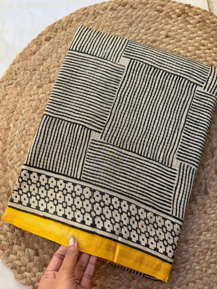 Length: 5.5 mtr printed with zari border; Width: 0.80 mtr Printed same as photo with zari border