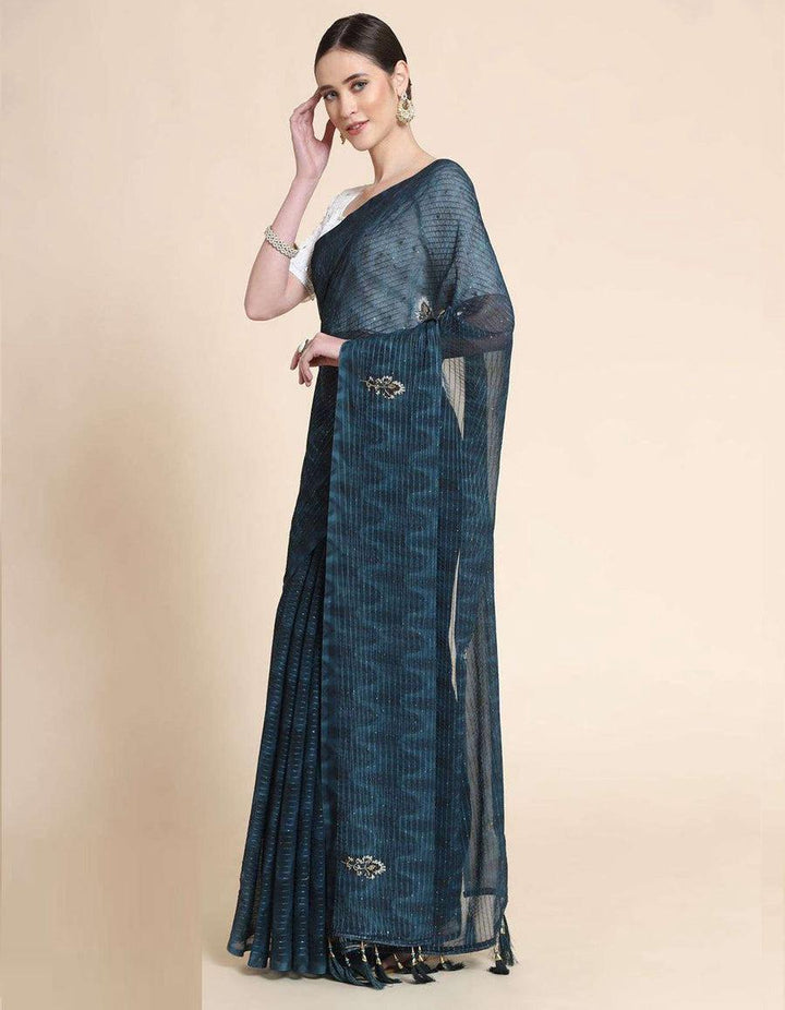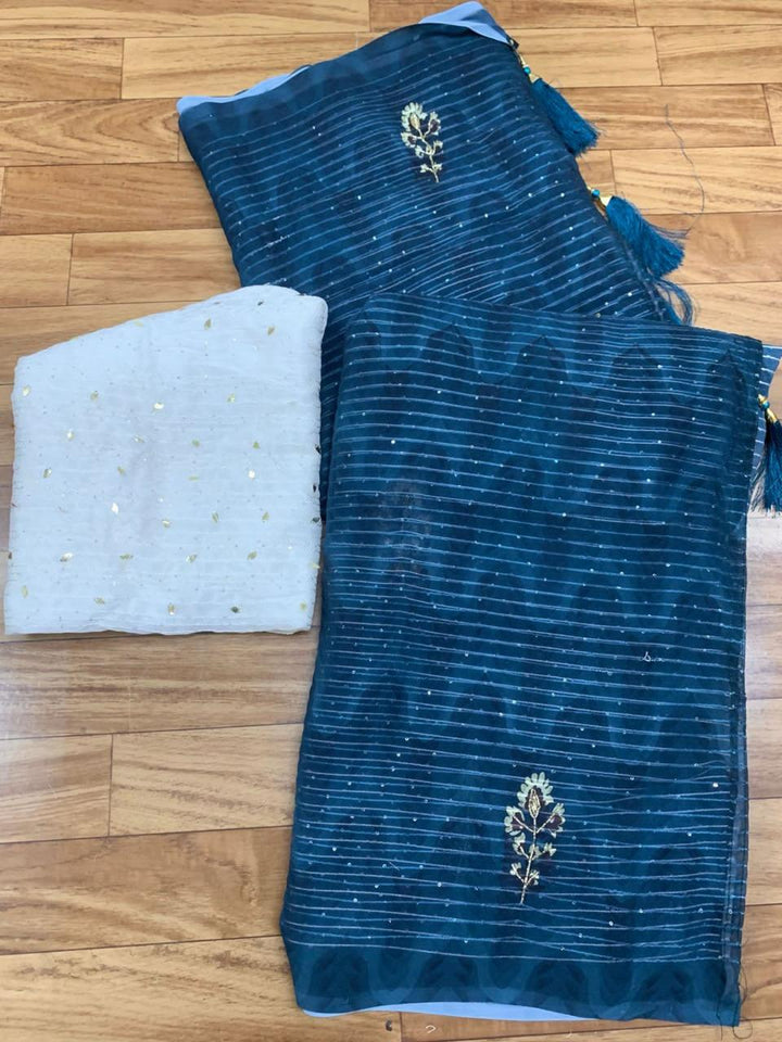🌈 SAREE :- Georgette With All Over 2MM Crochet Sequence Work With Digital Print On Saree