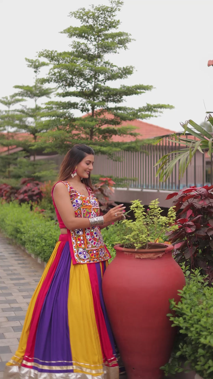 Gamthi Work Navratri Lehenga Choli Multi Color Cotton Traditional Set