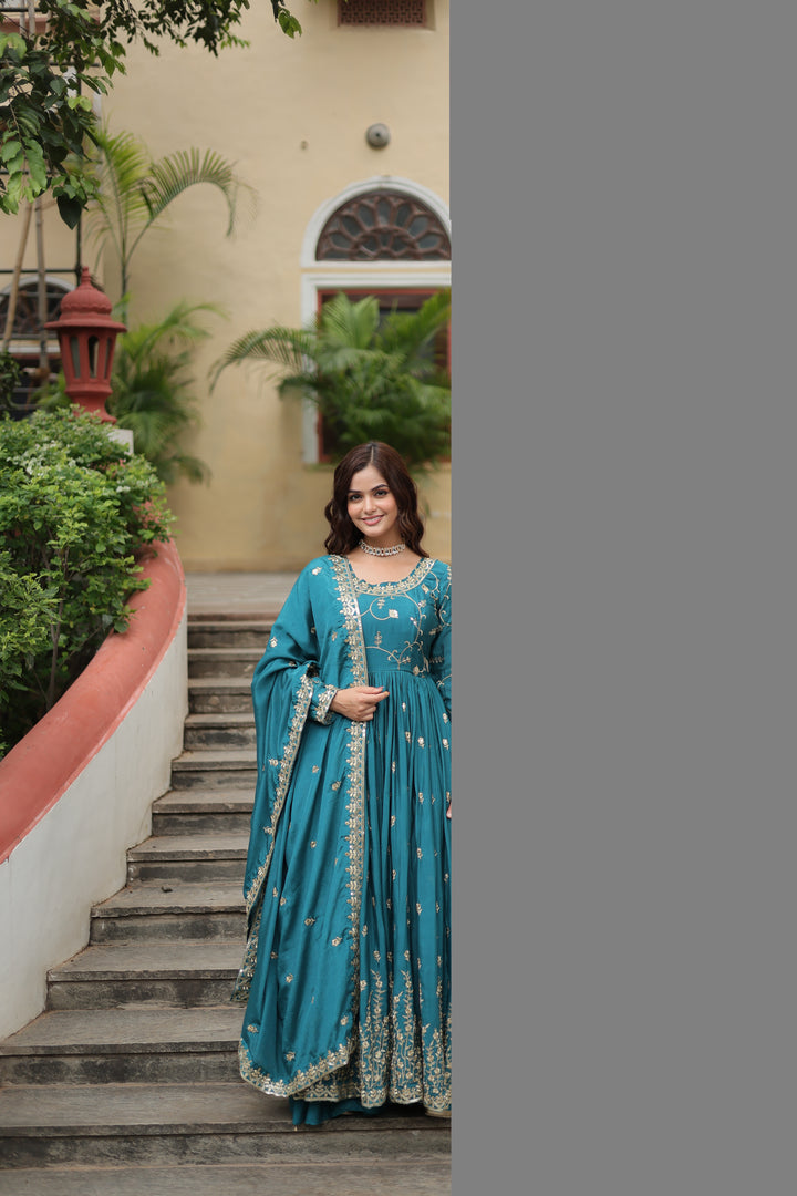 - Fabric & Work: Chinon with Rich Sequins Embroidered Work