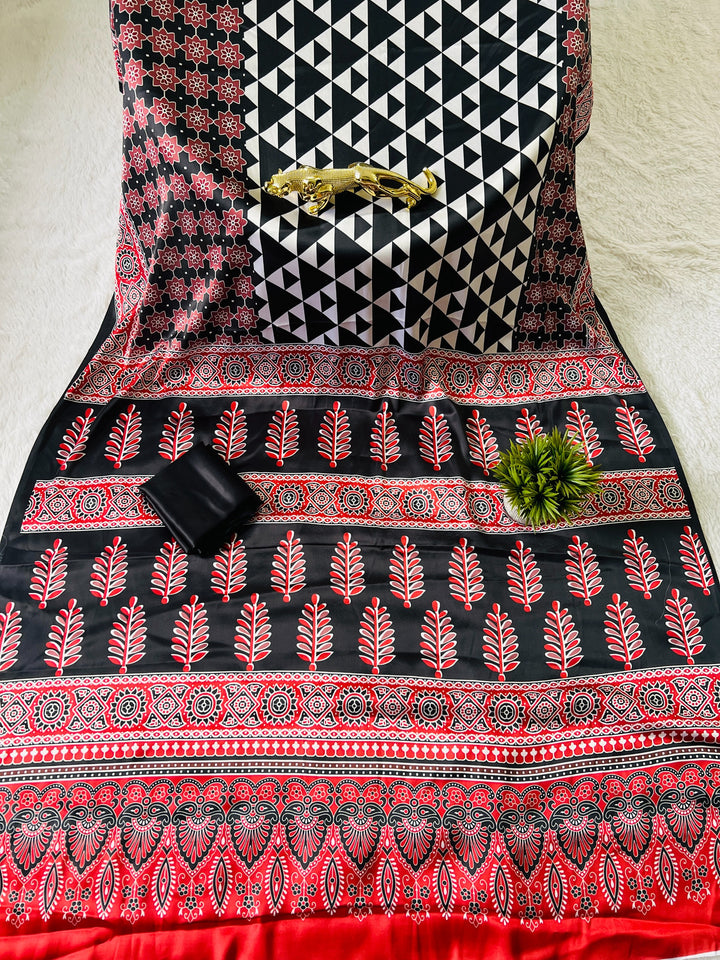 Available in semi gaji silk ajrakh natural digital print saree with ajrakh and fancy ajrakh pallu saree Same fabric Ajrakh blouse.