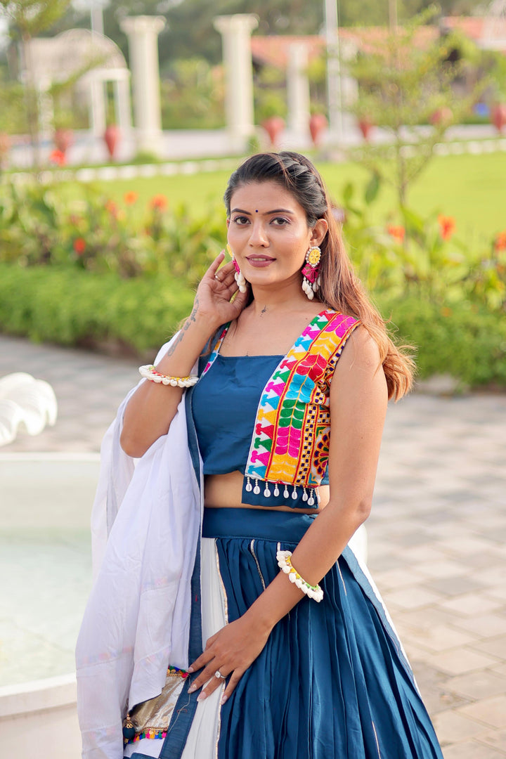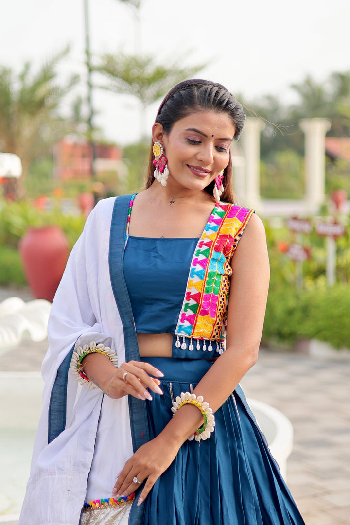 Work:-Â Gamthi work & Ribbon with Lumpi lace border