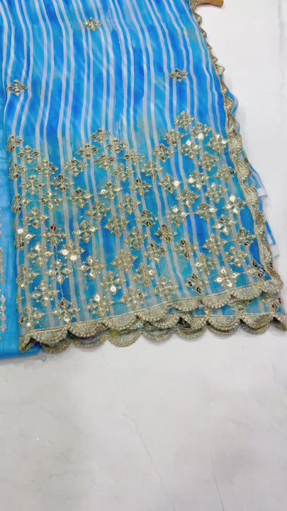 🏷️ Saree :- Heavy Fox Georgette With Beautiful Shibori Printed And Zari + 5.MM Sequence In Pallu_Skirt + Cut_Work Embroidery