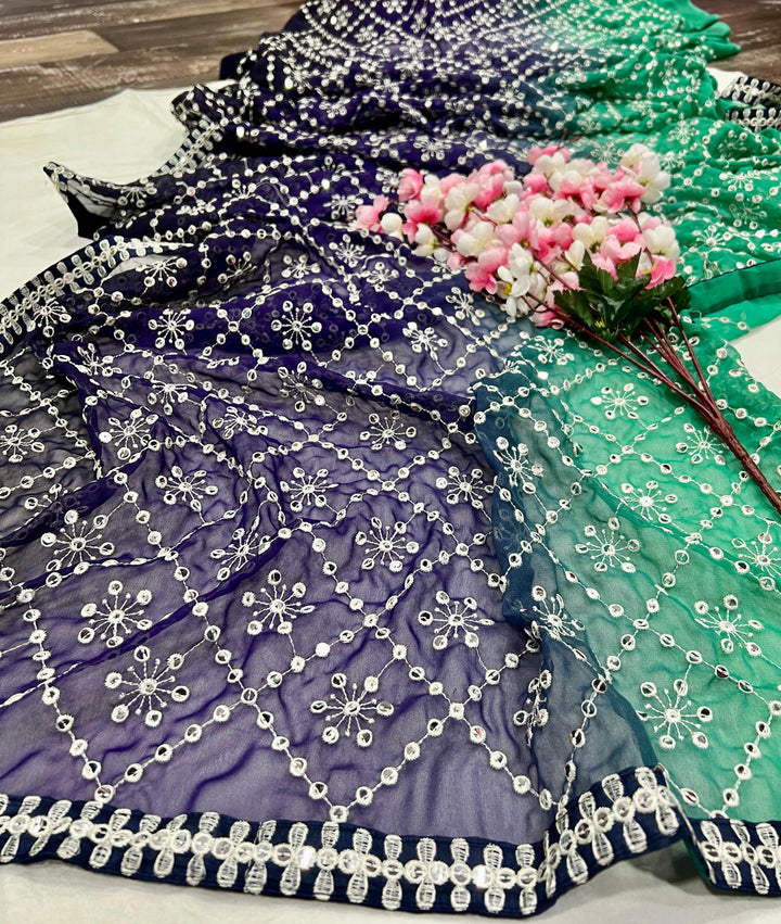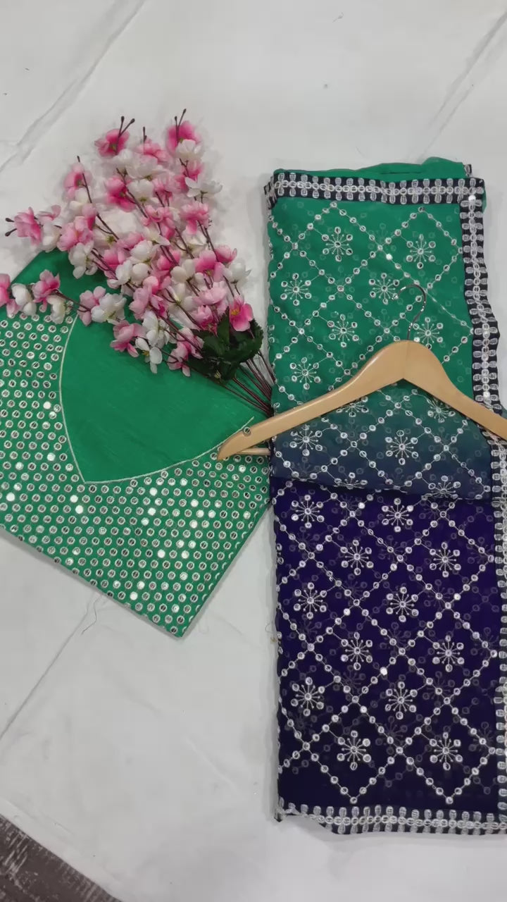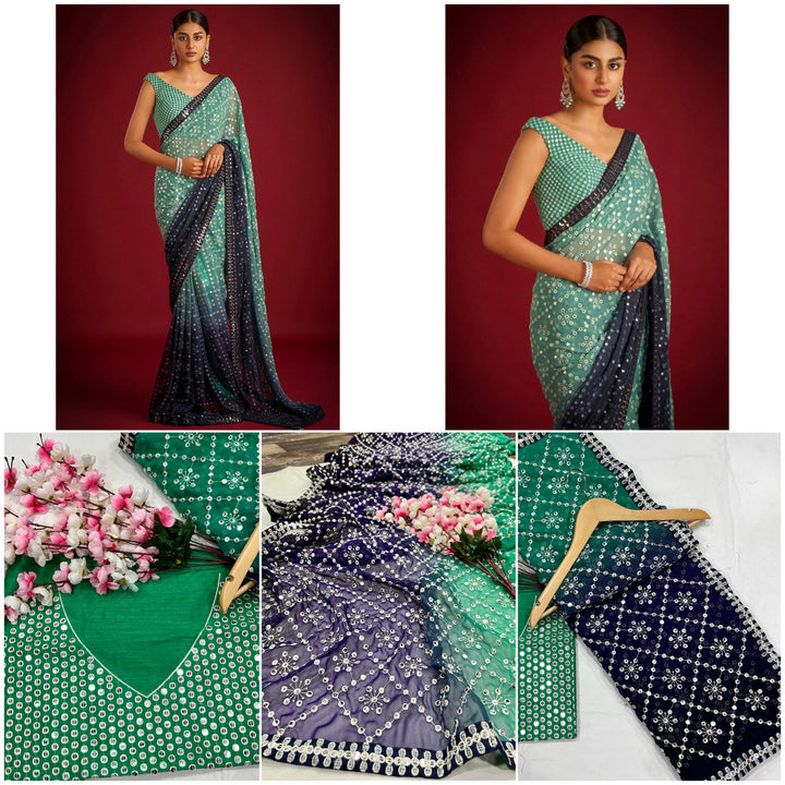 Heavy Fox Georgette With Peddling Print And 7.MM Sequence + Multi🔖 Work In Allover Saree