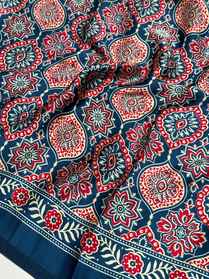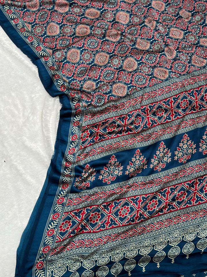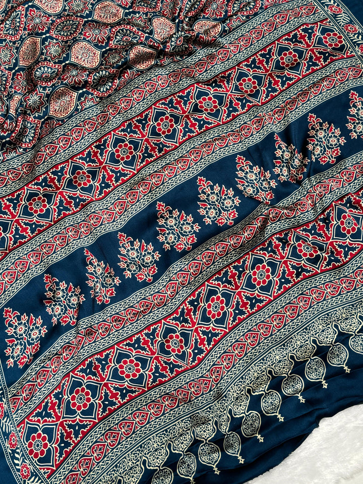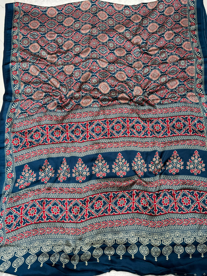 New ajrakh modal Silk Ajrakh Fancy pallu saree