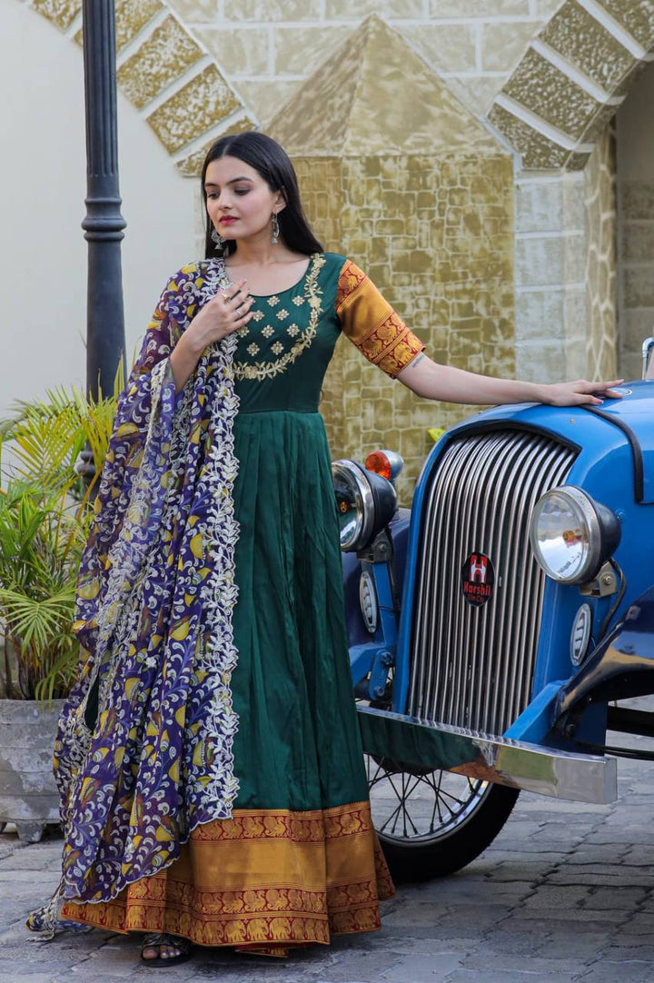 🥰 Silk Gown with Jequard weaving And embroidery work, It looks Adorable for women, it Designed to flatter all body types, gowns for women combine the best parts of western and Indian wear into one stunning ensemble. 💃🏻