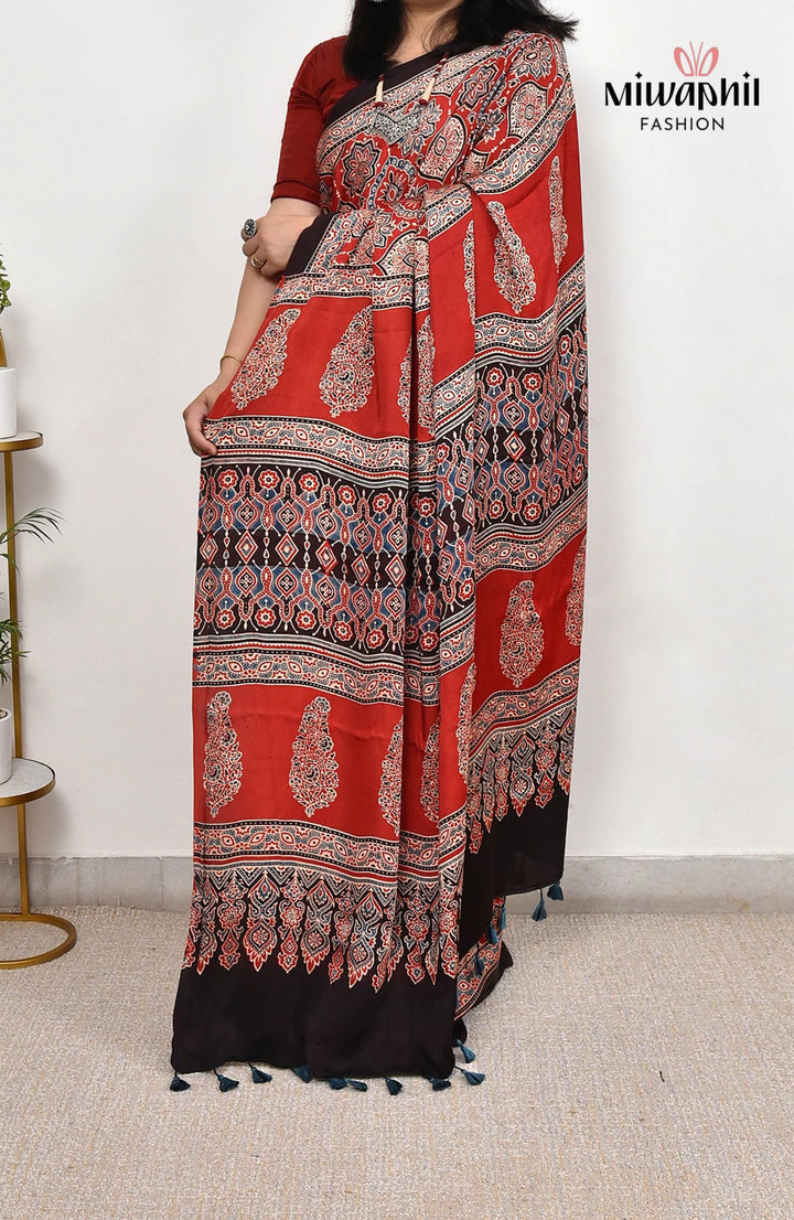 Red Ajrakh Gajji Silk Ajrakh Fancy Pallu saree