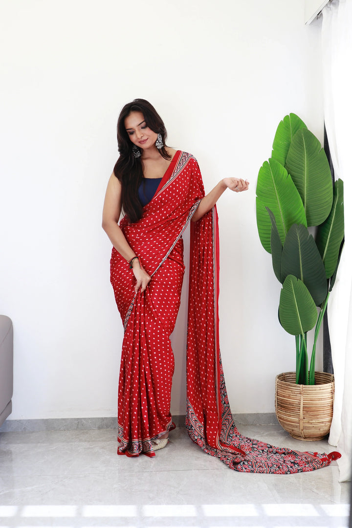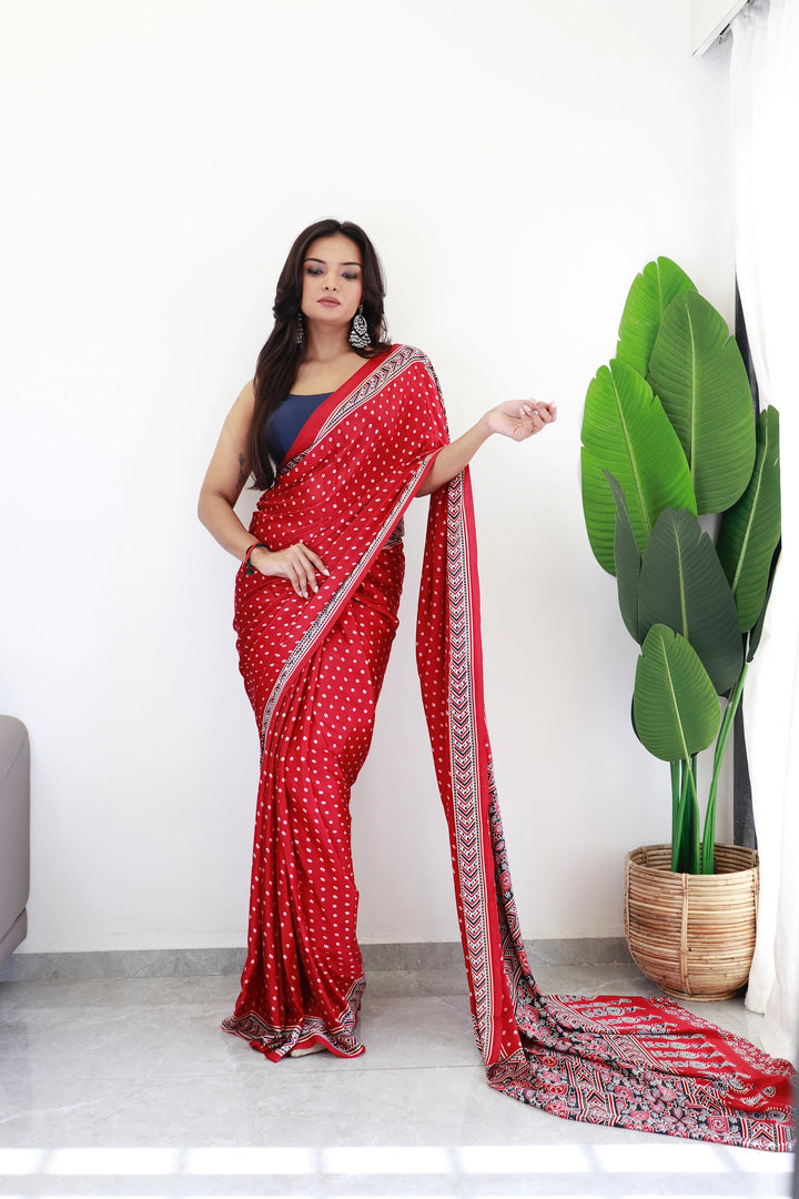 Maroon Bandhani With Ajrakh Printed Soft Modal Silk Natural Print Saree P3