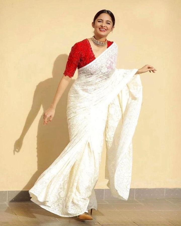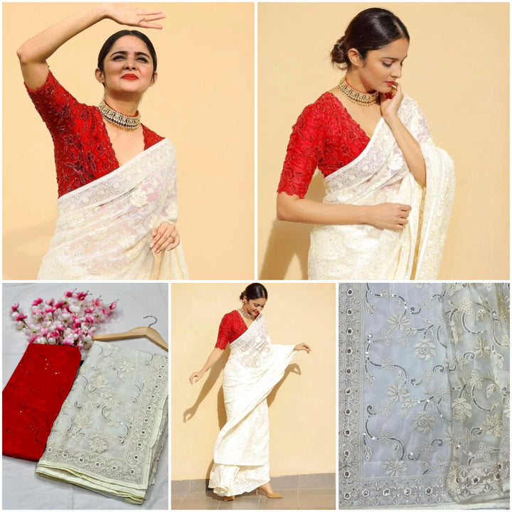 SAREE :- Blooming Georgette With Beautiful C-Pallu Embroidery Multi + 3 MM Sequence Work