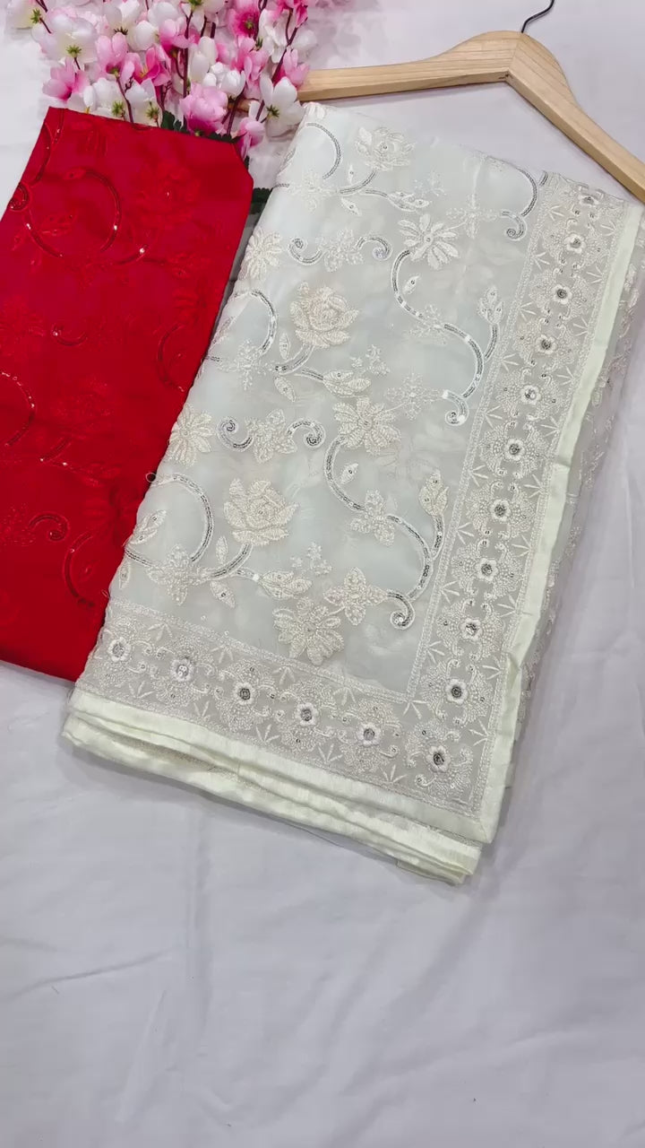 BLOUSE :- Heavy Mono Banglory With Embroidery Multi + 3 MM Sequence Work