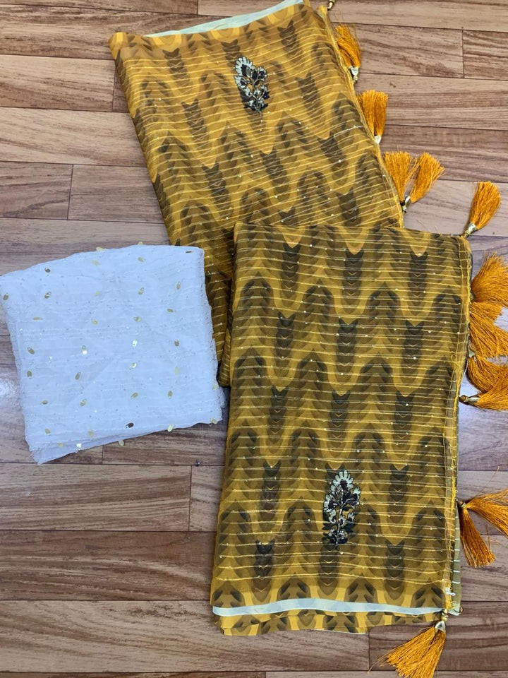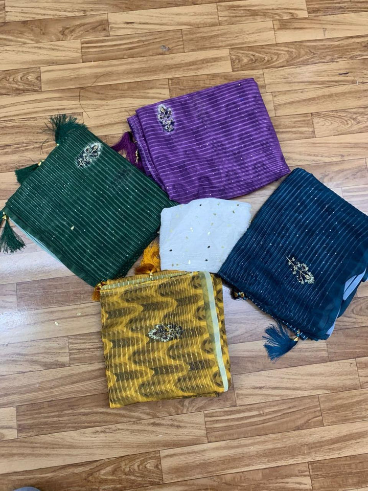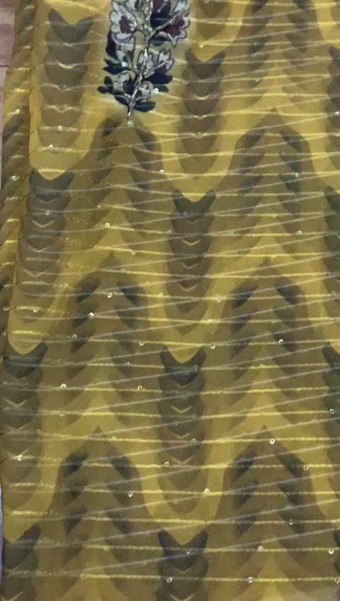 🌈 SAREE :- Georgette With All Over 2MM Crochet Sequence Work With Digital Print On Saree