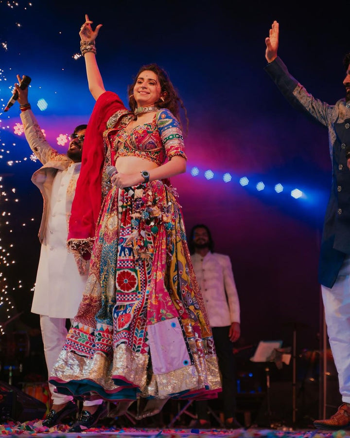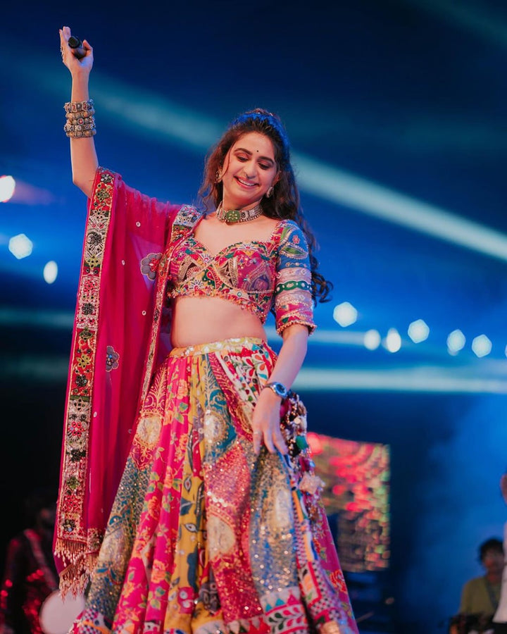 Work : Fancy Digital Print With Real Mirror Work And Golden Zari Gota Work