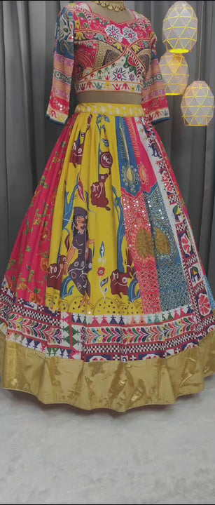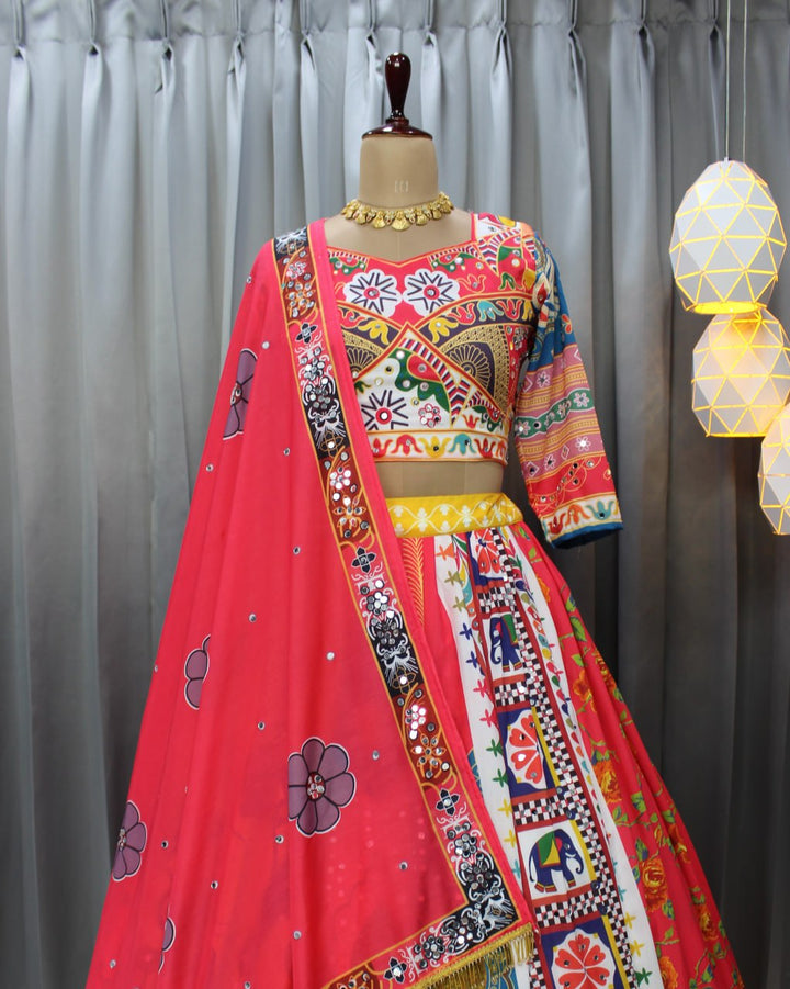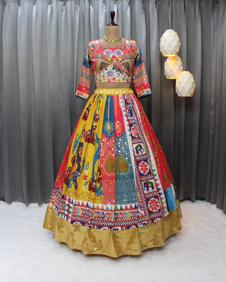 Muslin Cotton Chaniya Choli | Fancy Digital with Real Mirror Work for Traditional Wear