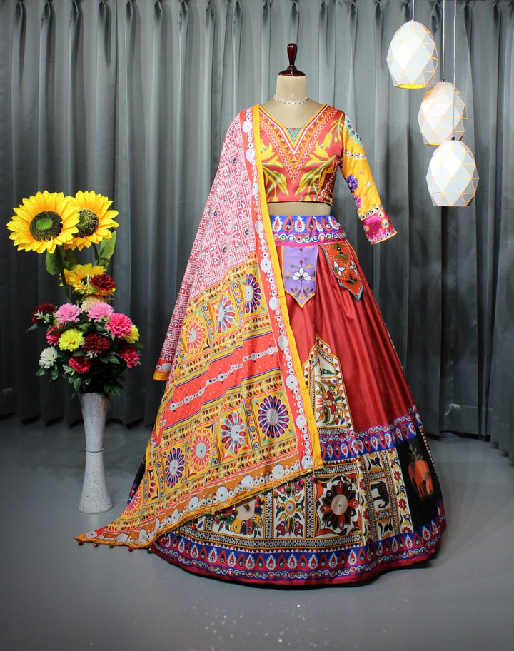 Soft Butter Silk Chaniya Choli | Fancy Digital with Real Mirror Work for Traditional Wear