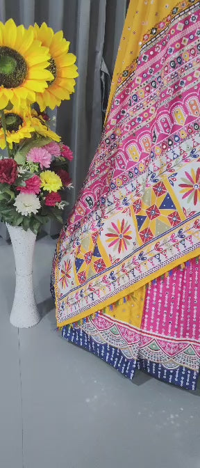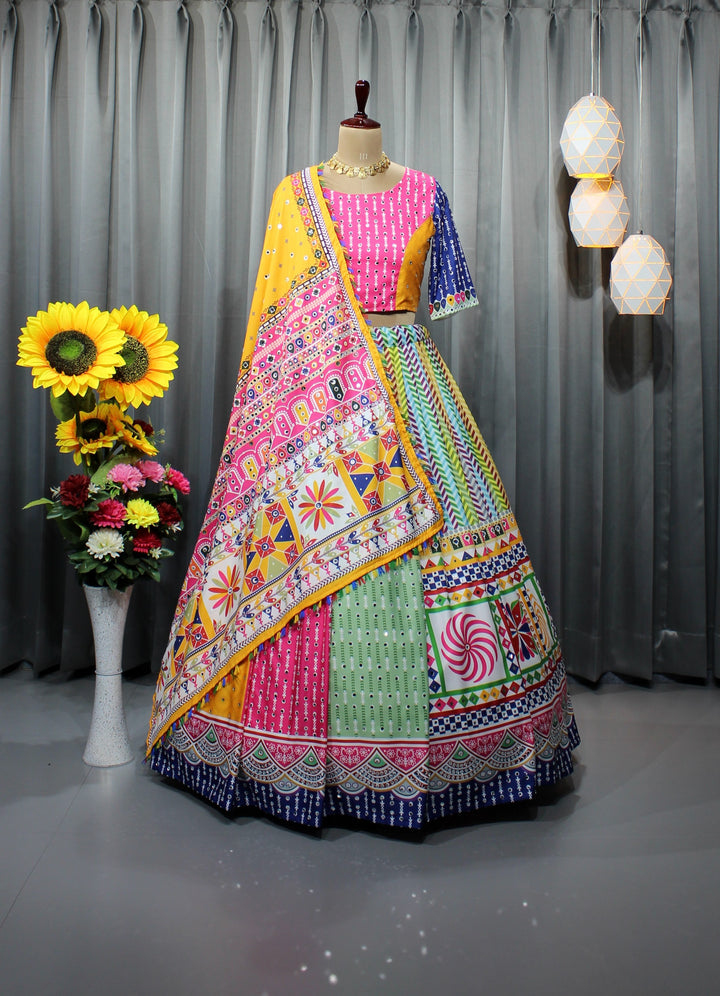 MultiColor Soft Butter Silk Chaniya Choli | Fancy Digital with Real Mirror Work for Traditional Wear