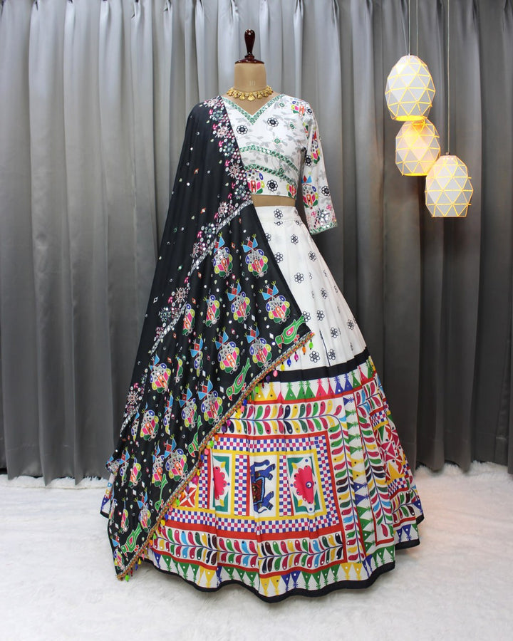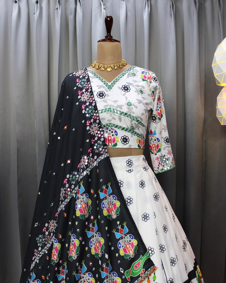 Muslin Cotton Chaniya Choli | Fancy Digital with Real Mirror Work for Traditional Wear