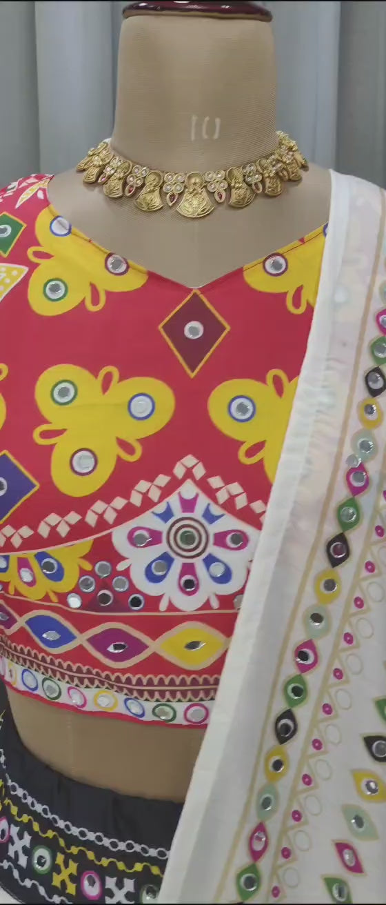 Muslin Cotton Chaniya Choli | Fancy Digital with Real Mirror Work for Traditional Wear