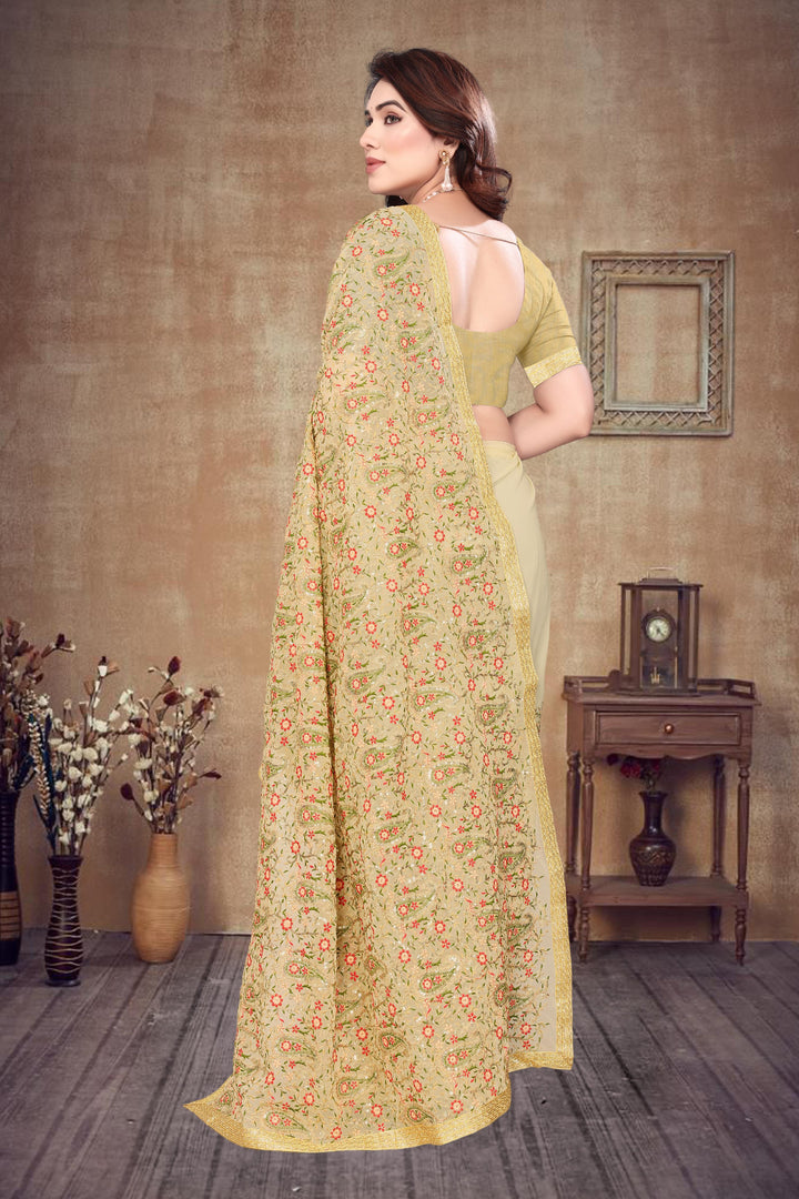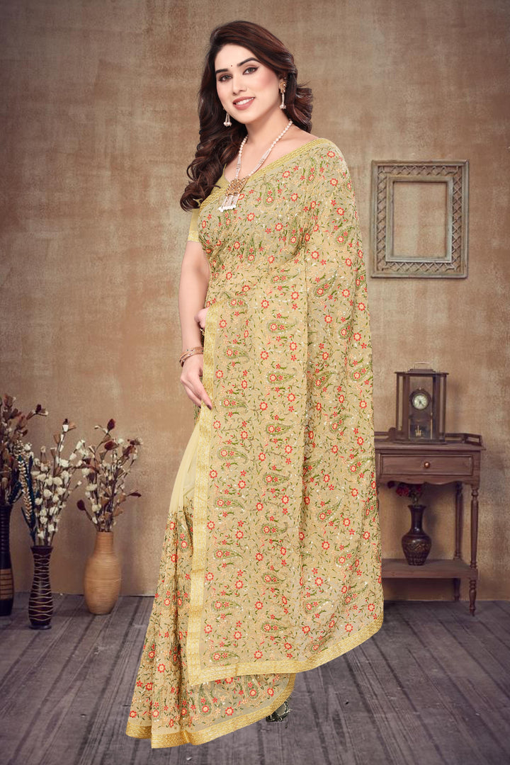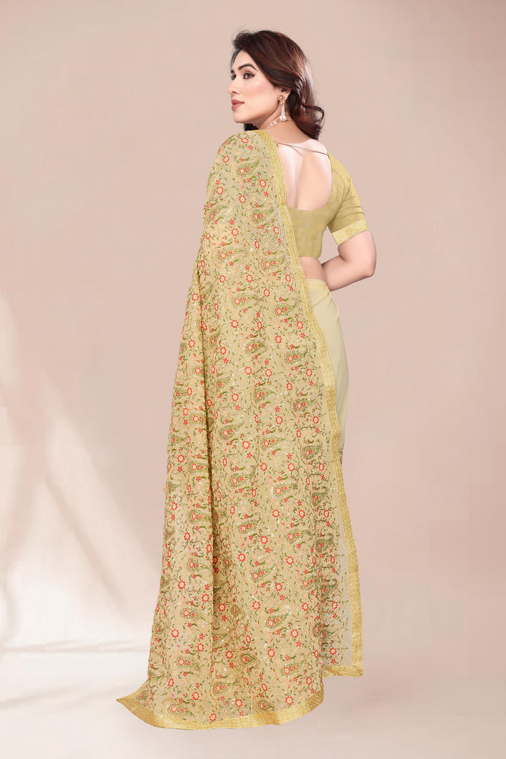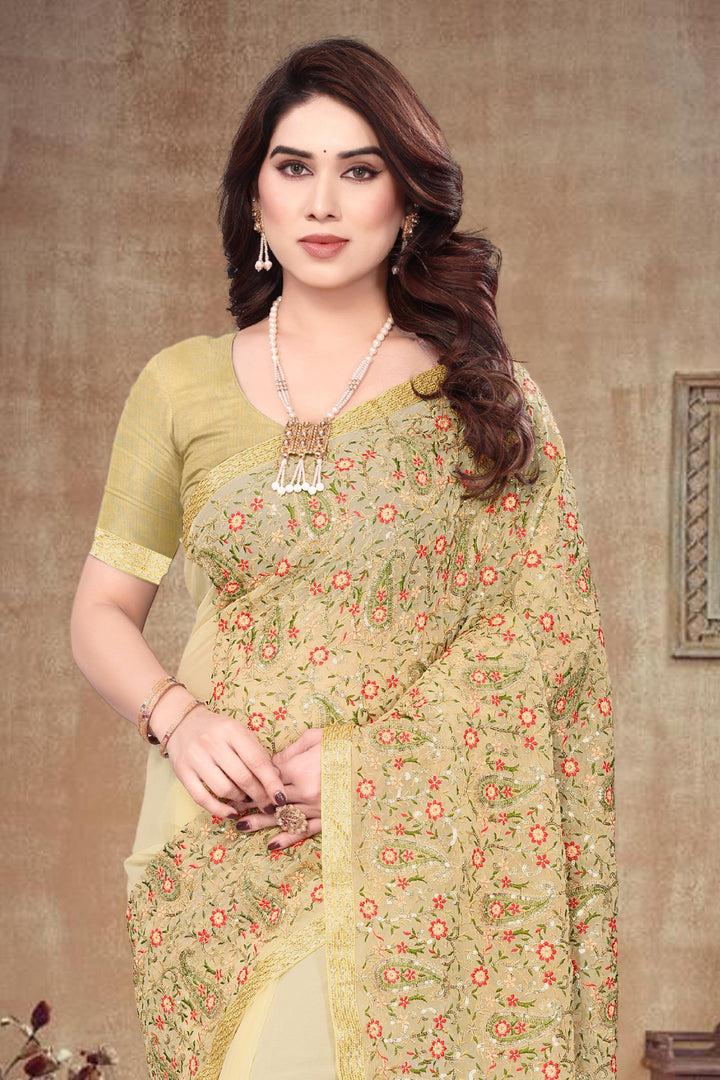 Heavy Fox Georgette With Multi + Zari Embroidery & 3.MM Sequence In Pallu_Skirt Work Saree And Readymade Embroidery Lace Work