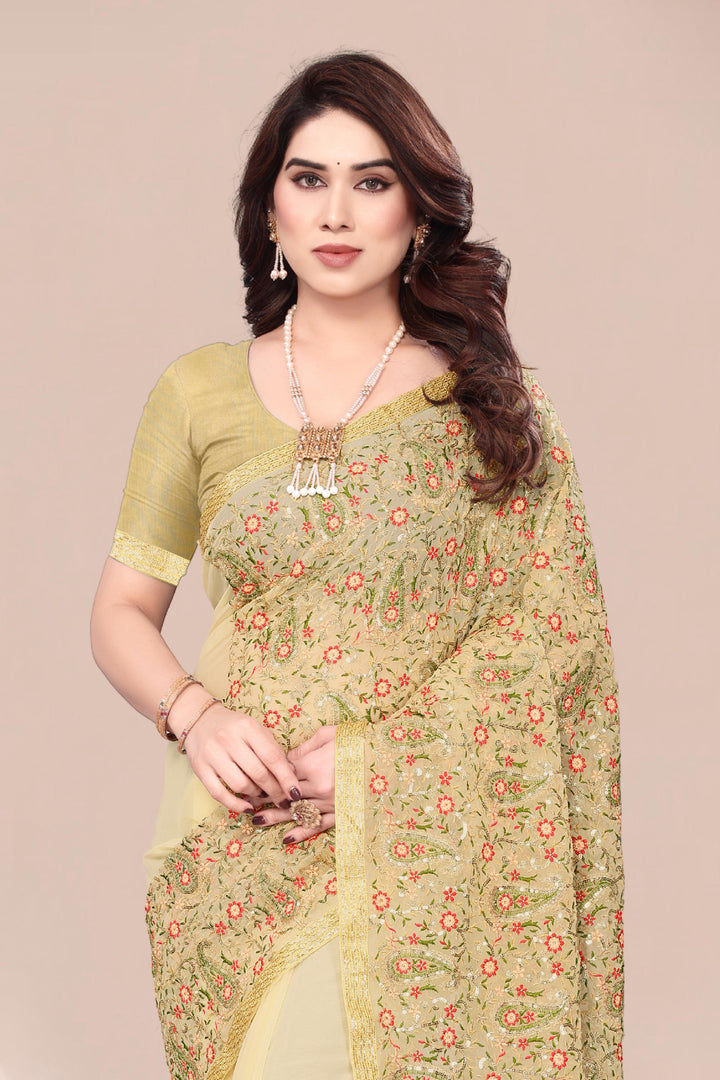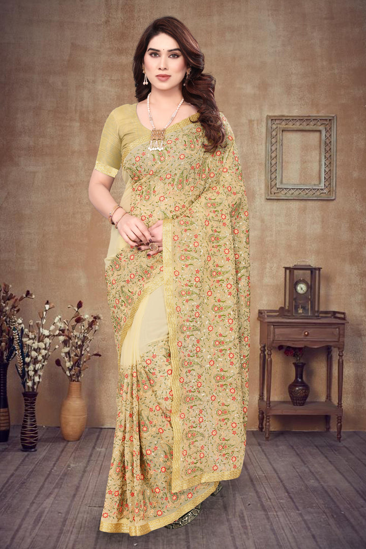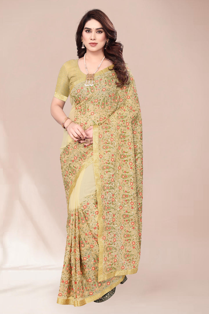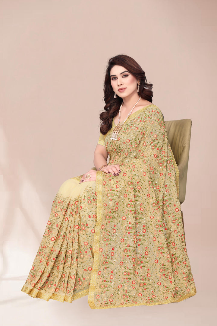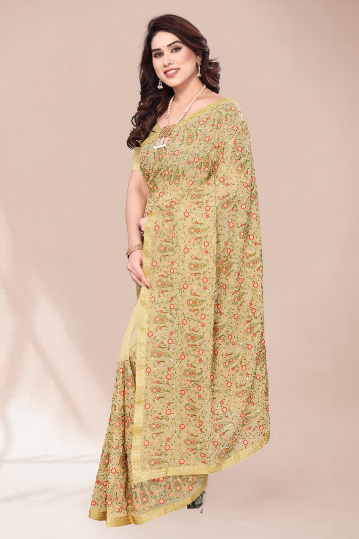 Heavy Fox Georgette With Multi + Zari Embroidery & 3.MM Sequence In Pallu_Skirt Work Saree And Readymade Embroidery Lace Work