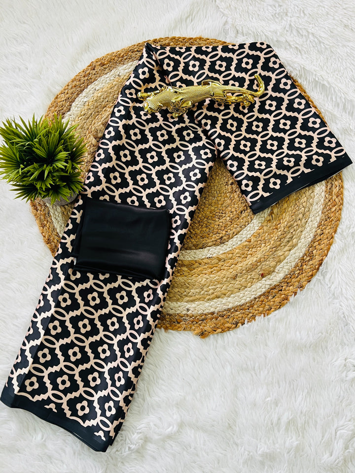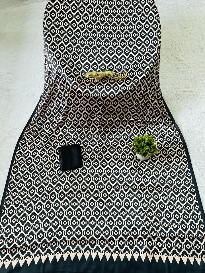 Black Ajrakh Primum Modal Silk Saree With Blouse
