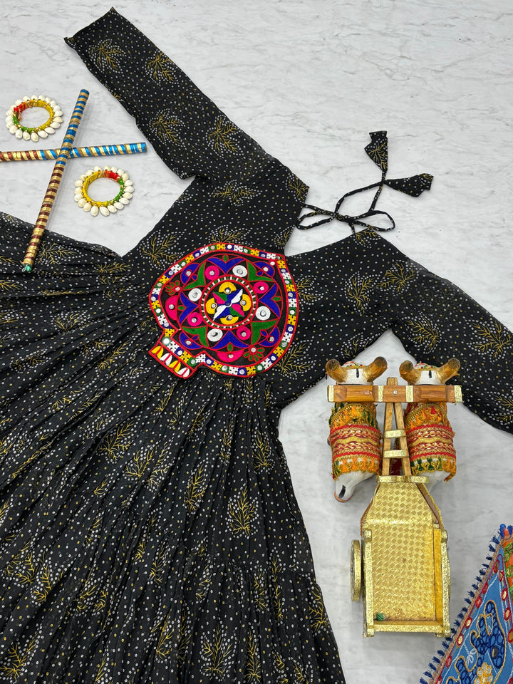 Black Navratri Gown Faux Georgette with Heavy Gamathi Mirror Work Dandiya Nights