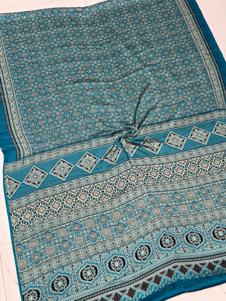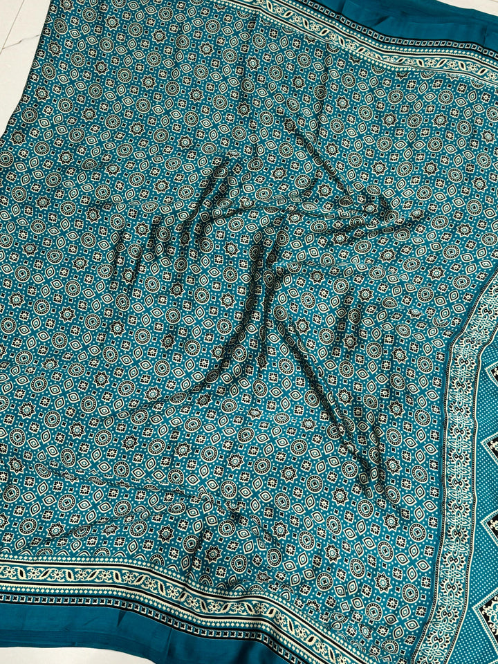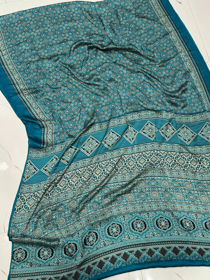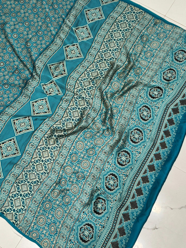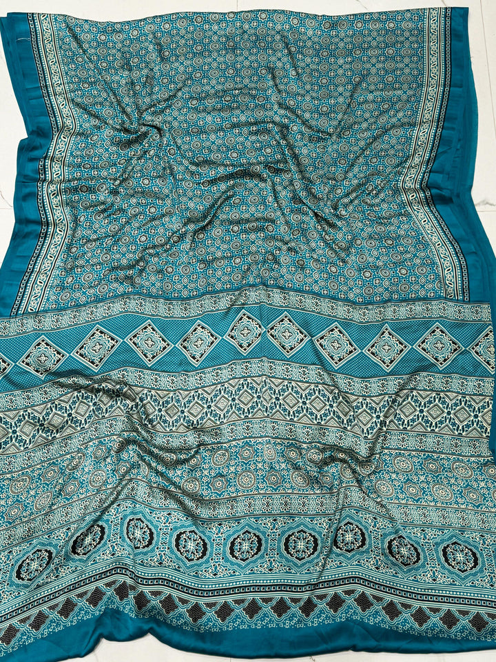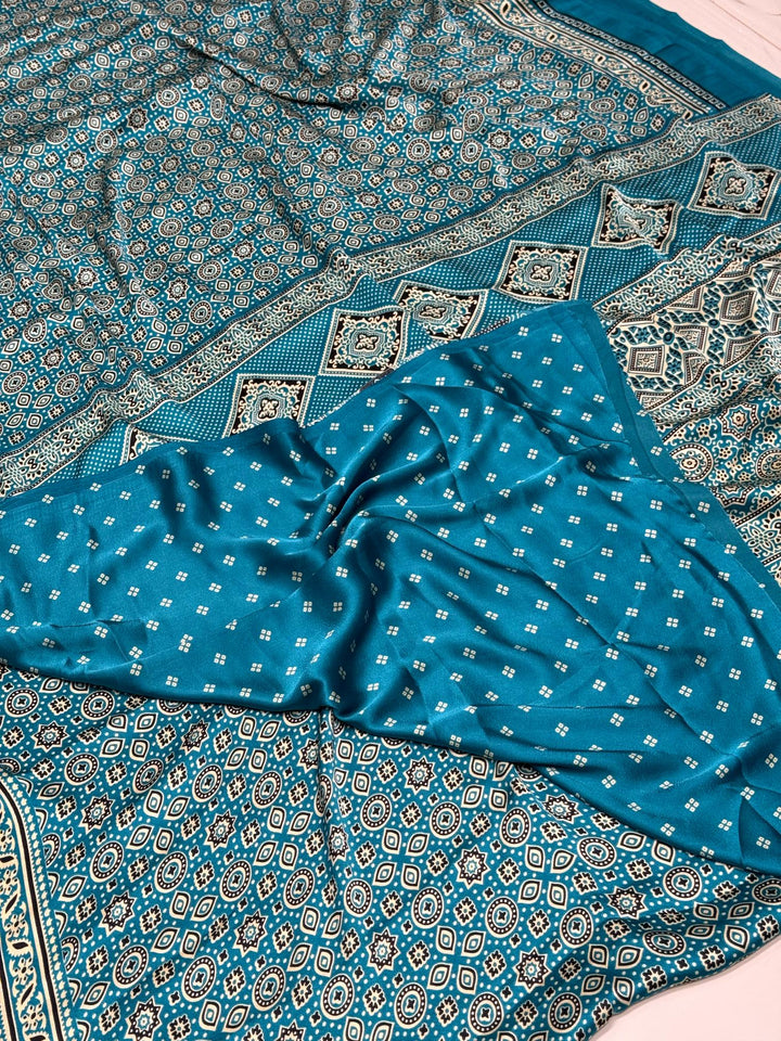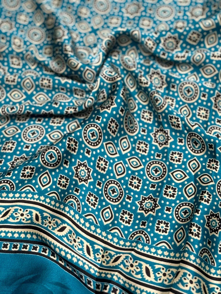 New ajrakh modal Silk Ajrakh Fancy pallu saree