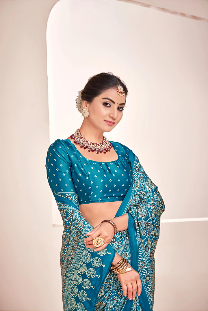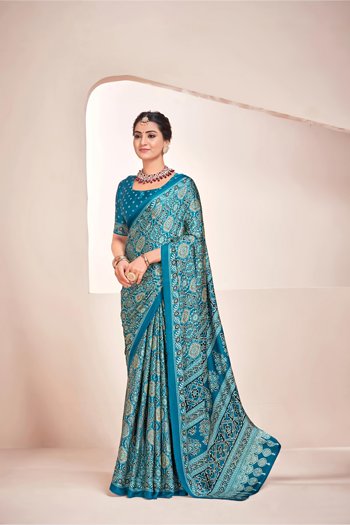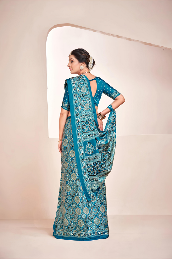 New Ajrakh Modal Silk Ajrakh Fancy Pallu Saree