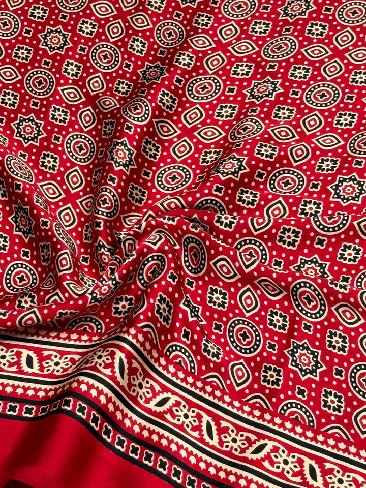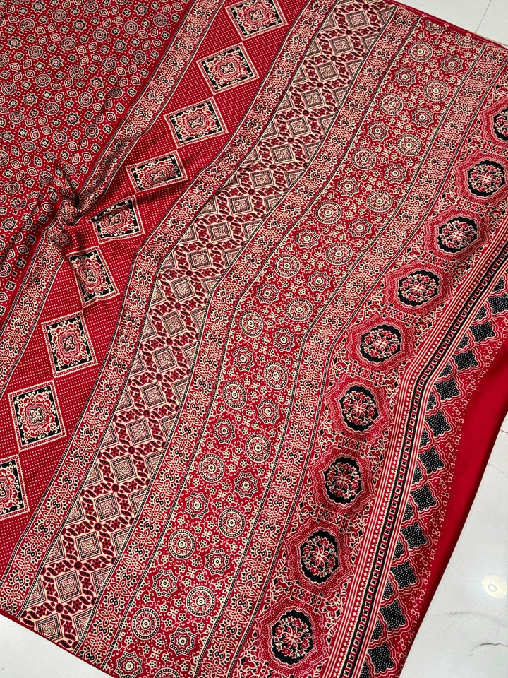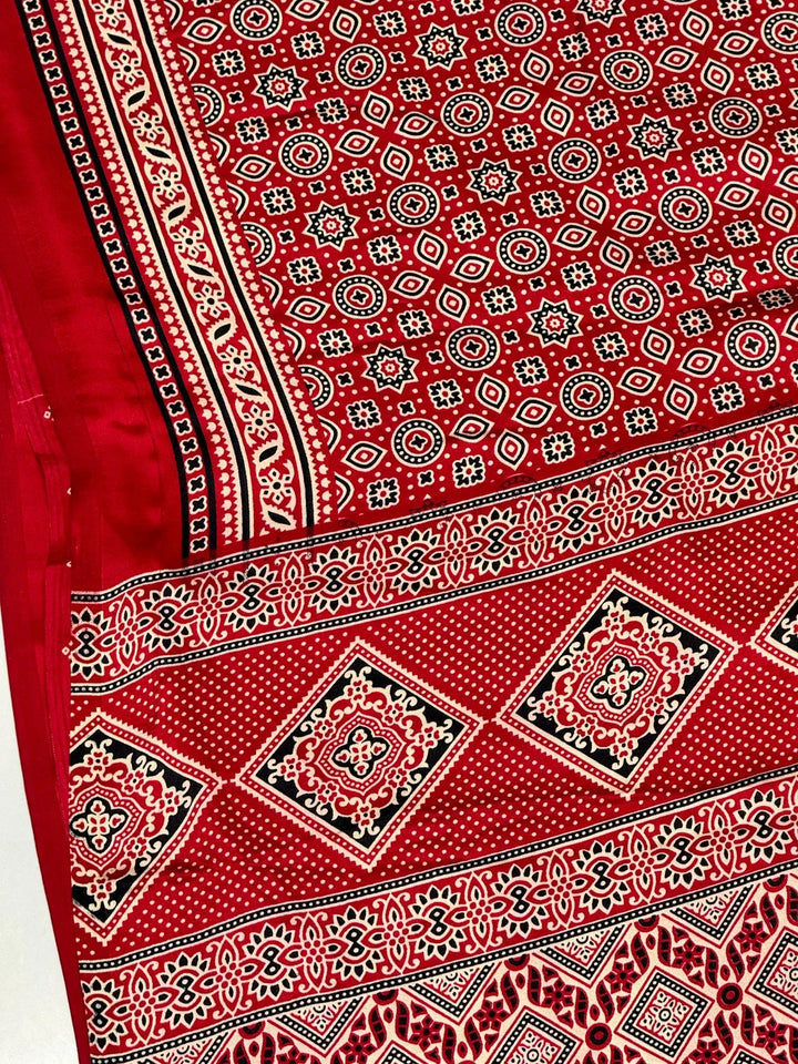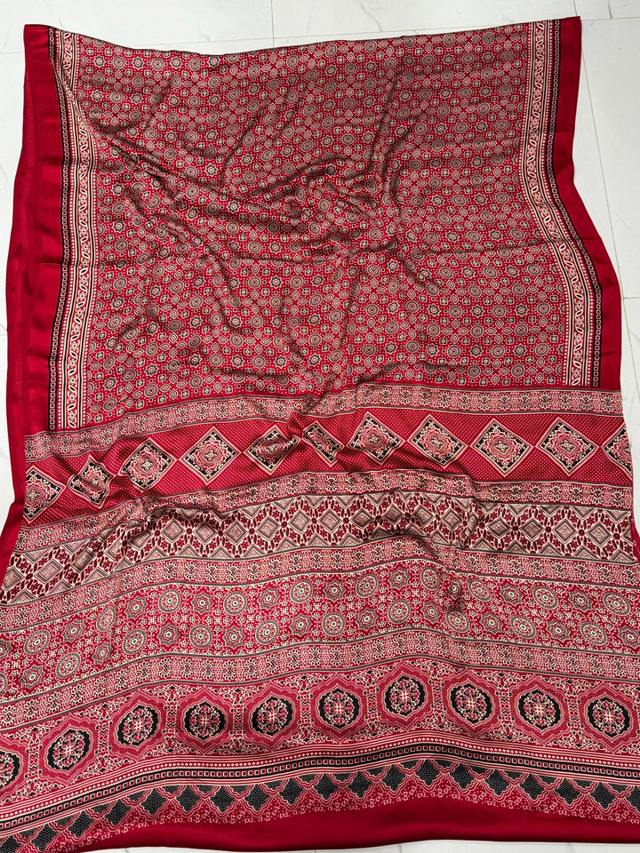 New ajrakh modal Silk Ajrakh Fancy pallu saree