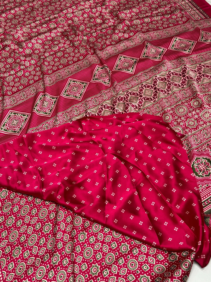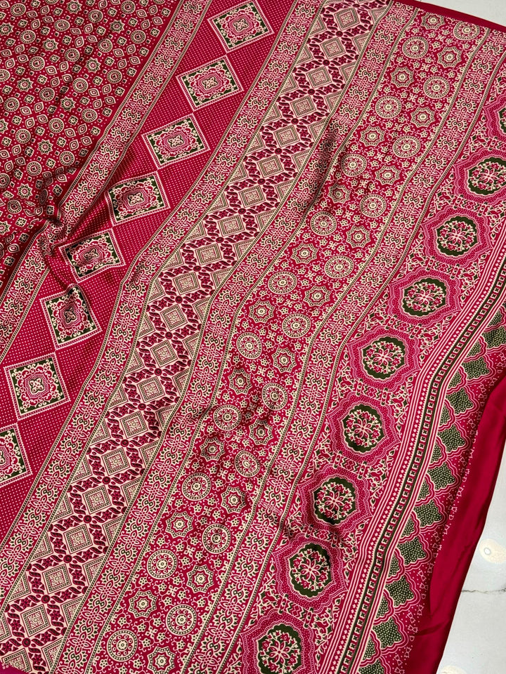 New ajrakh modal Silk Ajrakh Fancy pallu saree