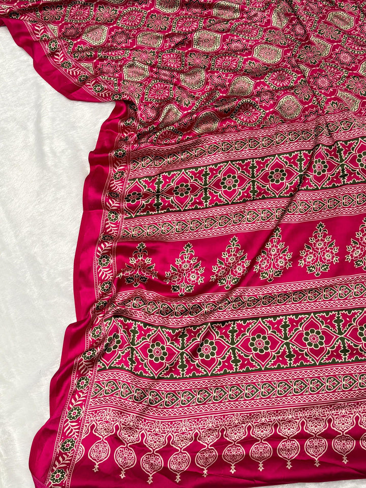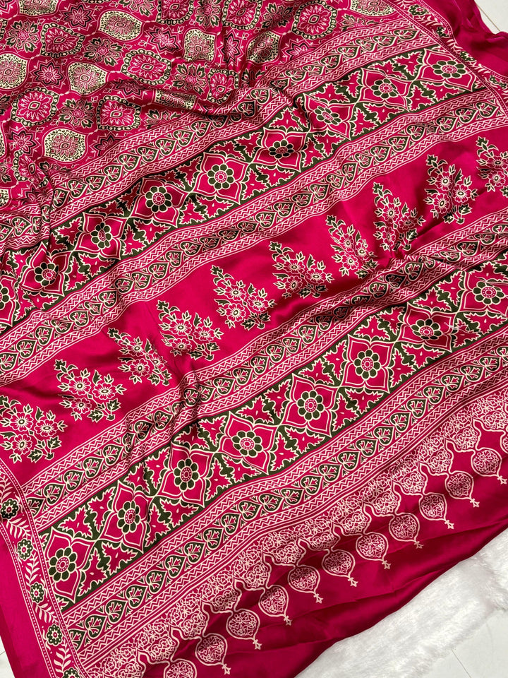 New ajrakh modal Silk Ajrakh Fancy pallu saree