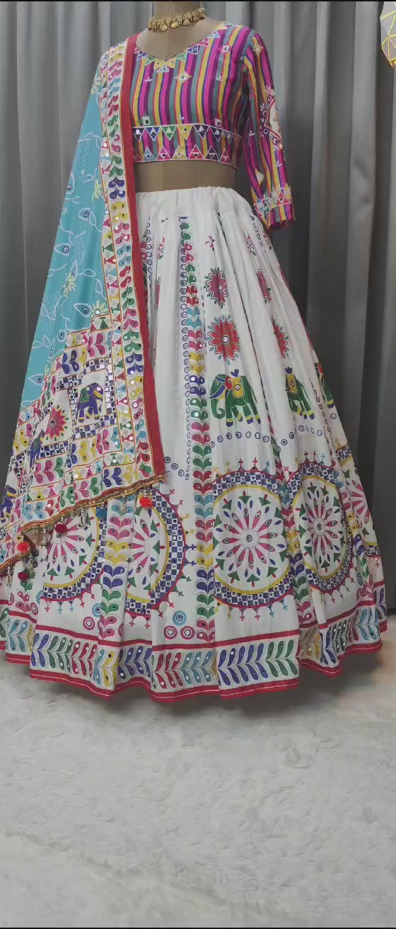 Soft Muslin Silk Chaniya Choli | Fancy Digital with Real Mirror Work for Traditional Wear