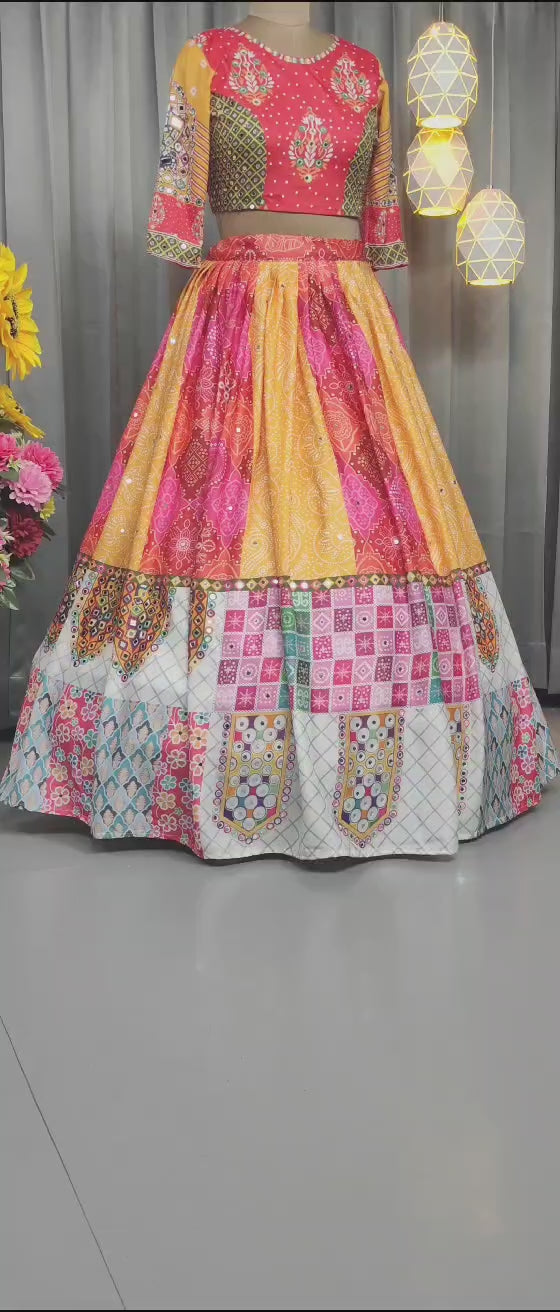 Soft Butter Silk Chaniya Choli | Fancy Digital with Real Mirror Work for Traditional Wear