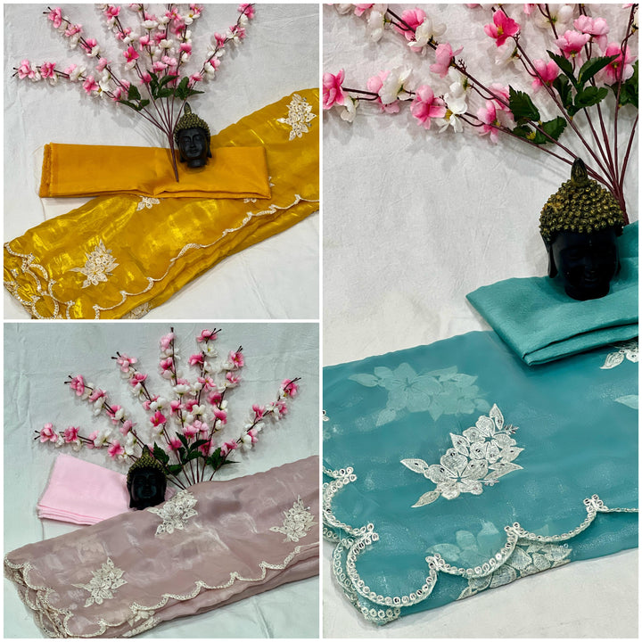 🏷️ Saree :- Fabulous Zimmy Chhu With Multi Thread + 5.MM Sequence And Cut Work Border
