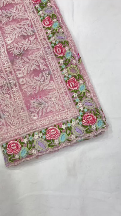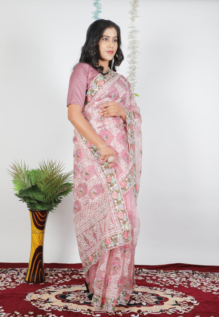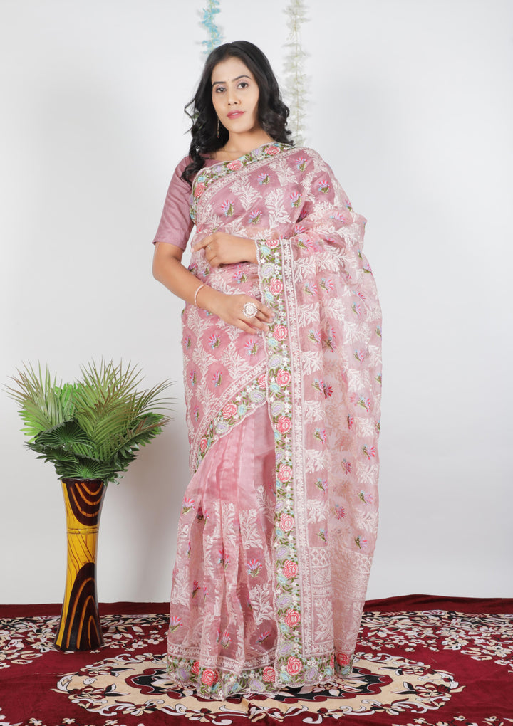 🏷️ Saree :- Tissue Organza With Beautiful Multi Embroidery C Pallu Work